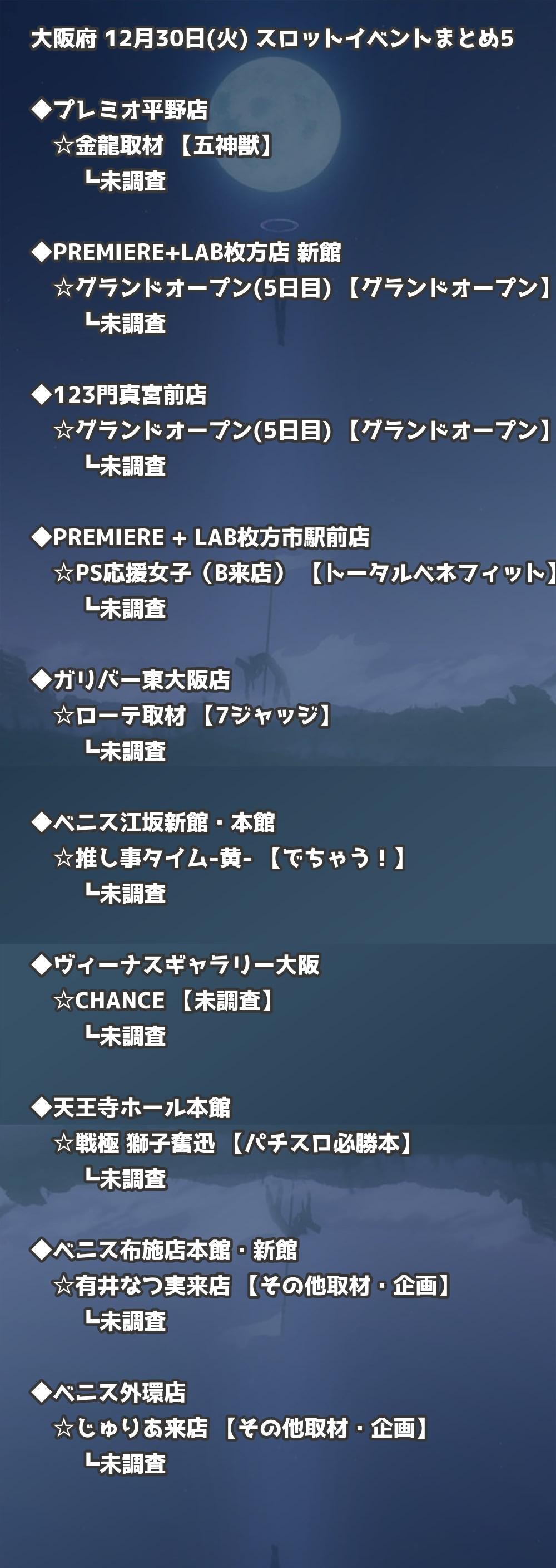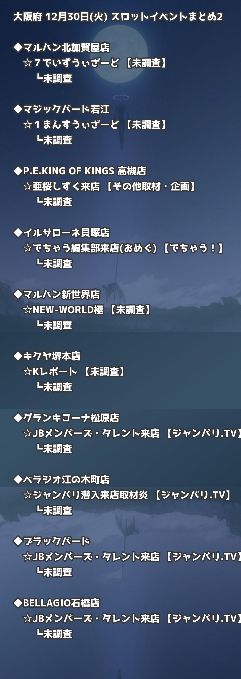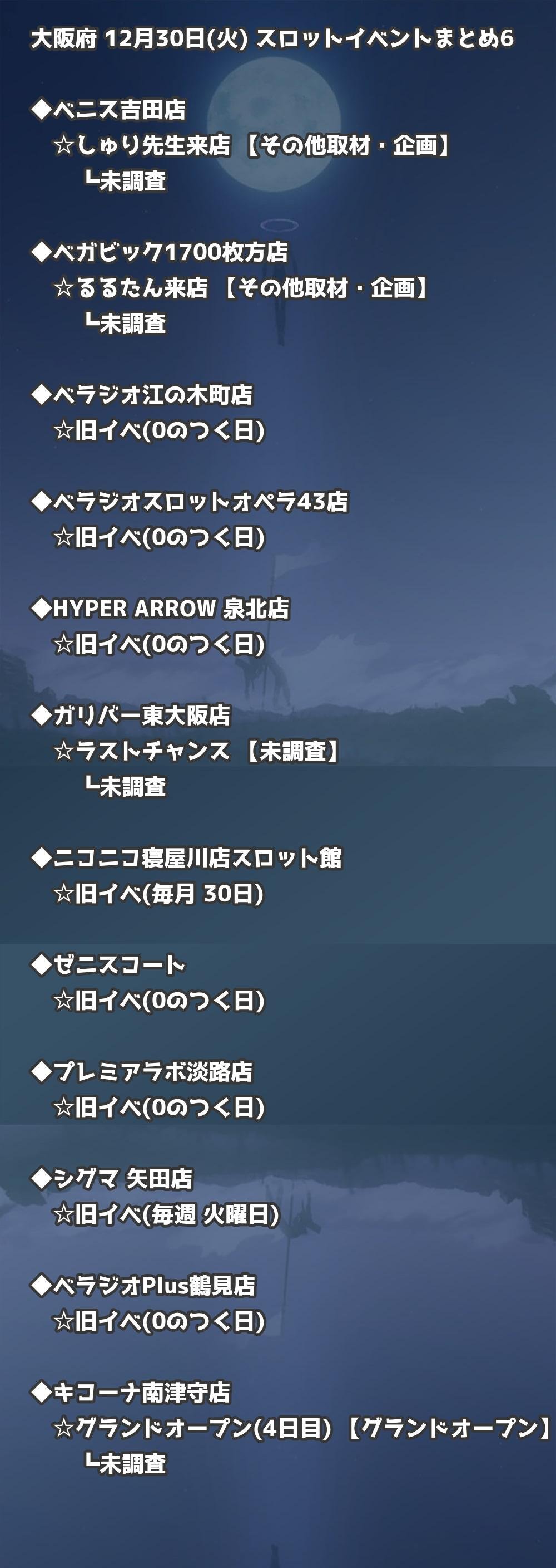 【大阪府】12月30日(火) パチンコホールイベント取材まとめ記事です。