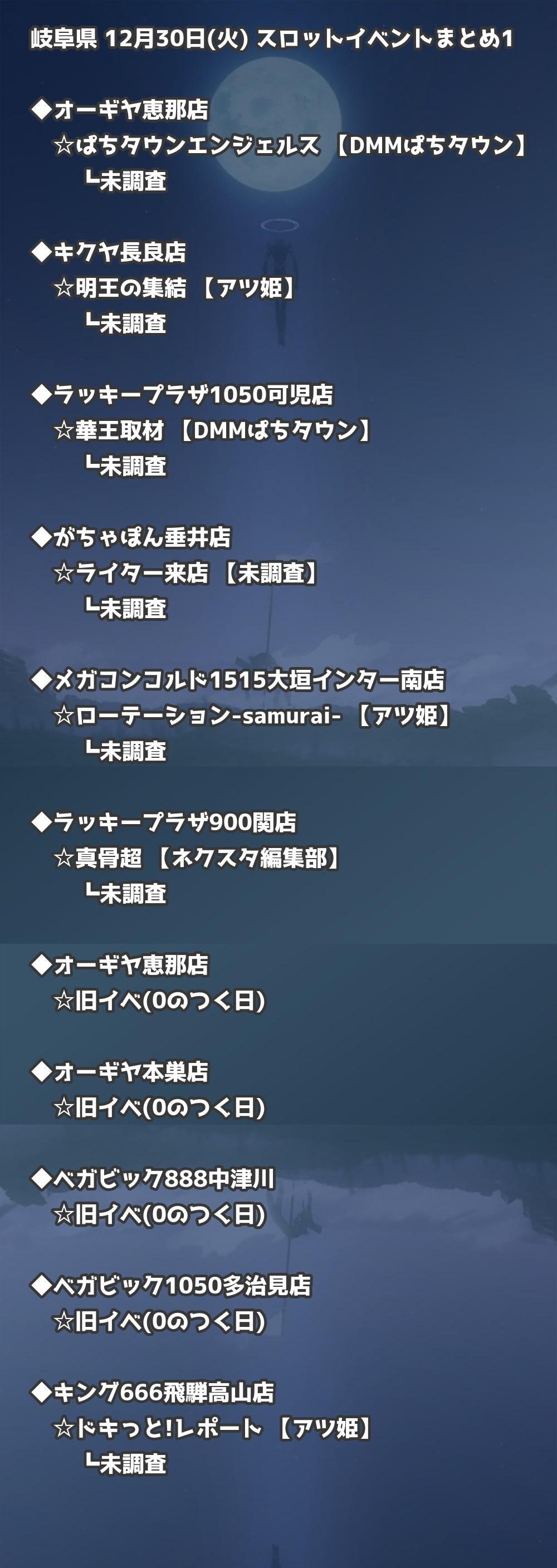 【岐阜県】12月30日(火) パチンコホールイベント取材まとめ記事です。