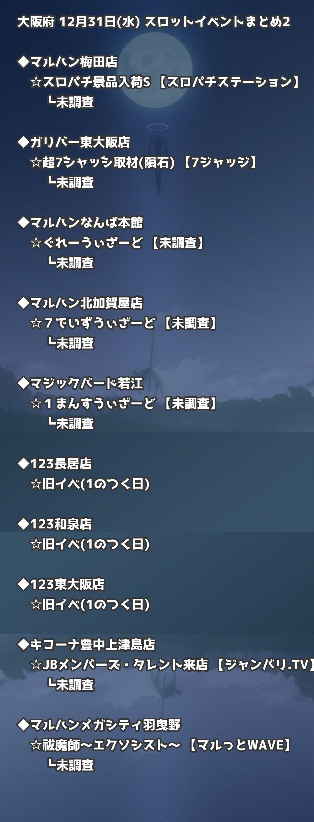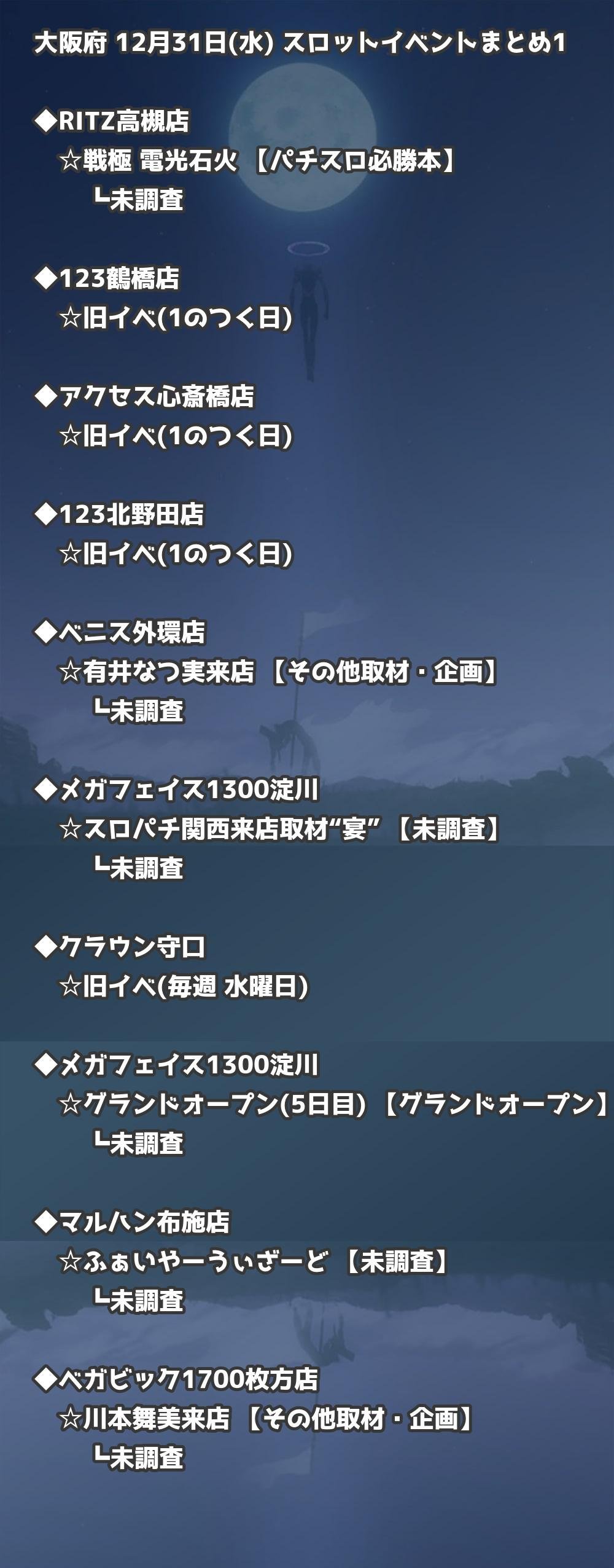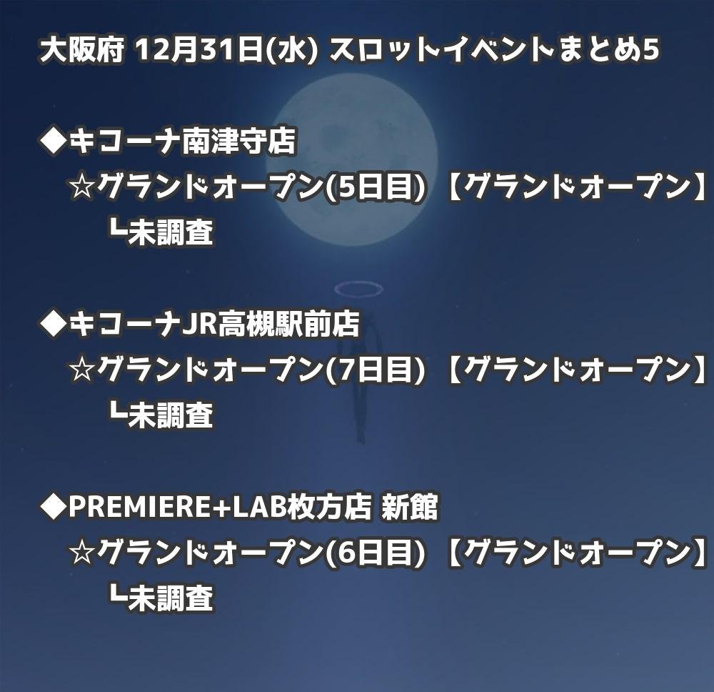 【大阪府】12月31日(水) パチンコホールイベント取材まとめ記事です。
