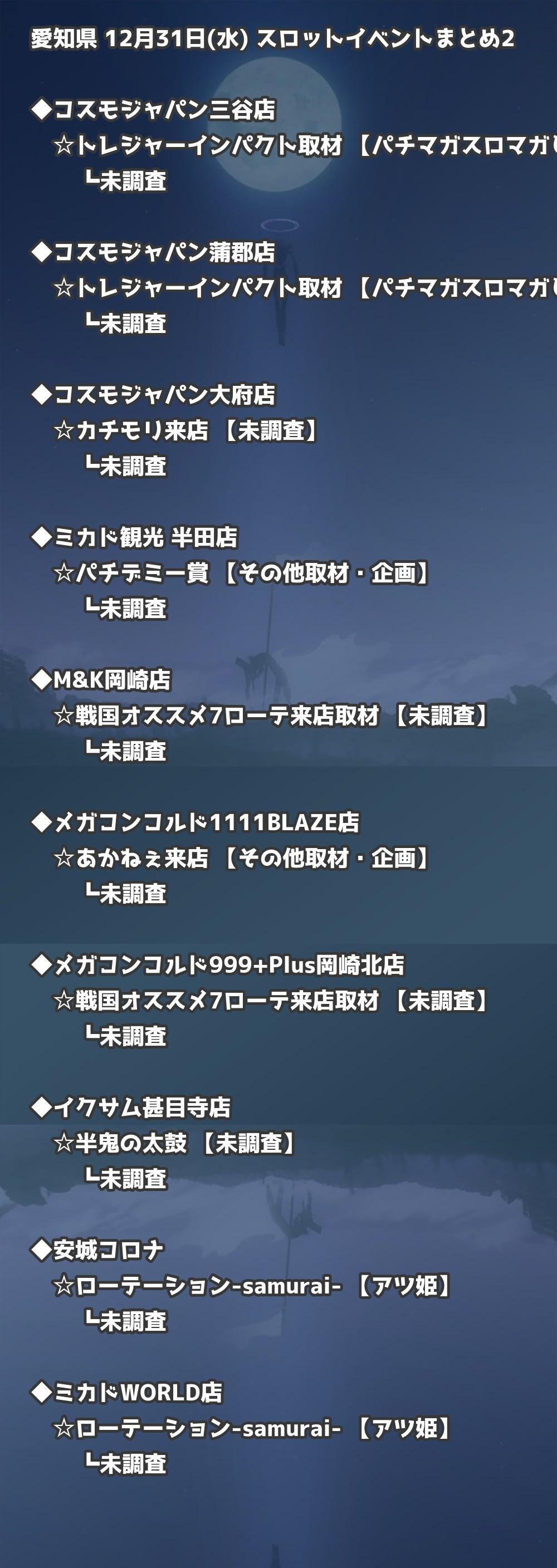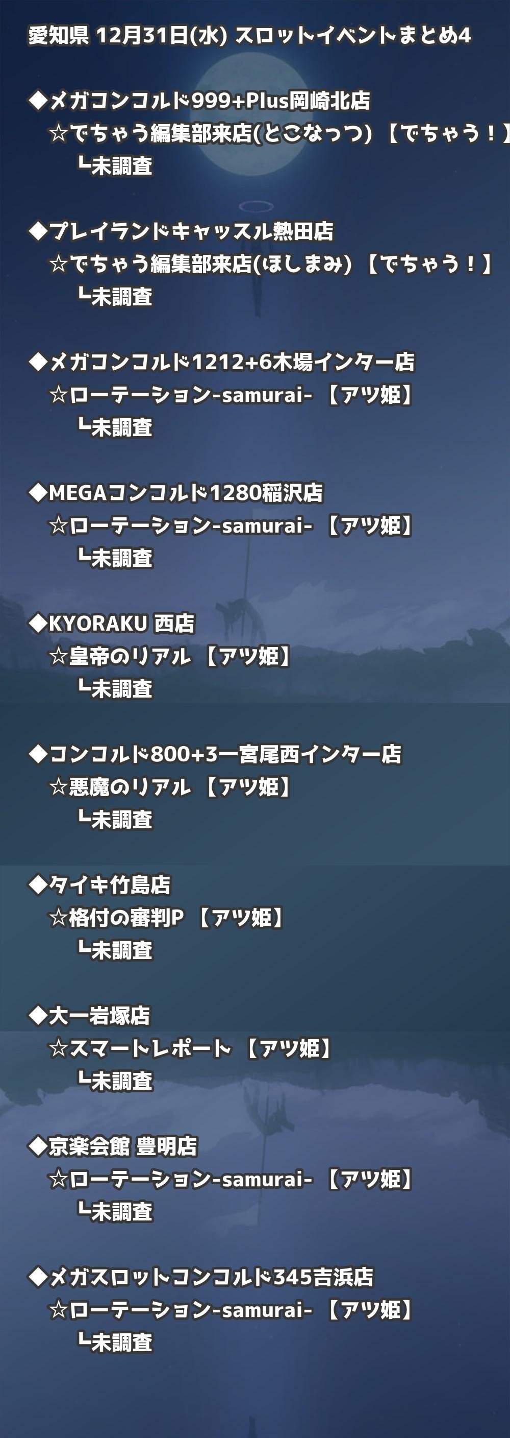 【愛知県】12月31日(水) パチンコホールイベント取材まとめ記事です。