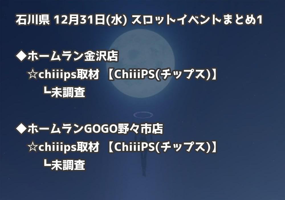 【石川県】12月31日(水) パチンコホールイベント取材まとめ記事です。