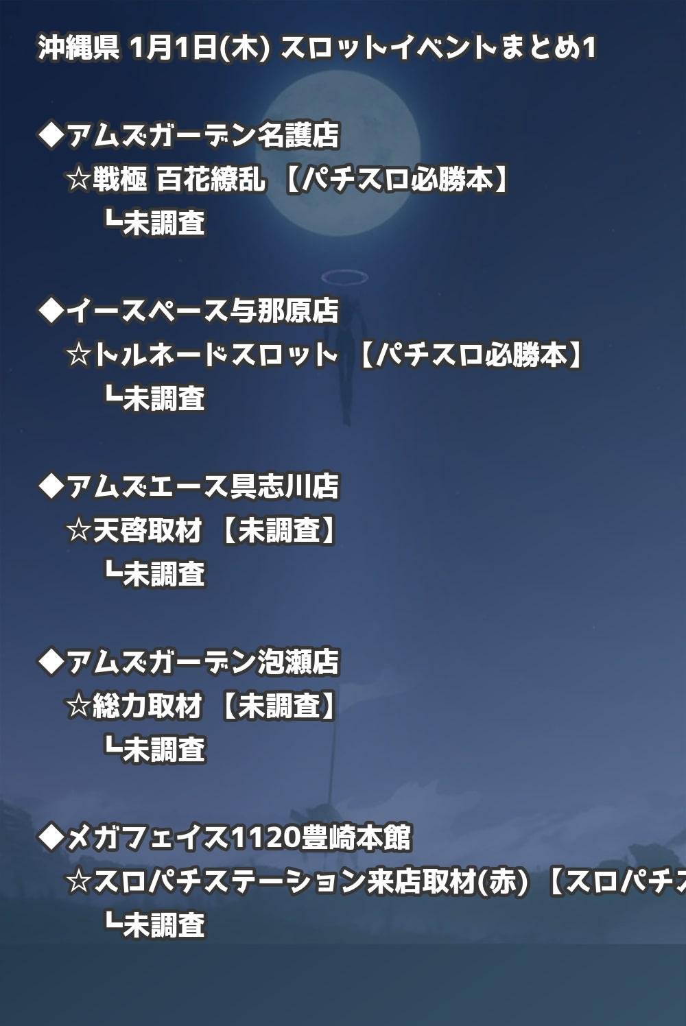 📊 沖縄県 1月1日(木) 勝てるパチンコ・スロット取材店舗一覧|おすすめ順