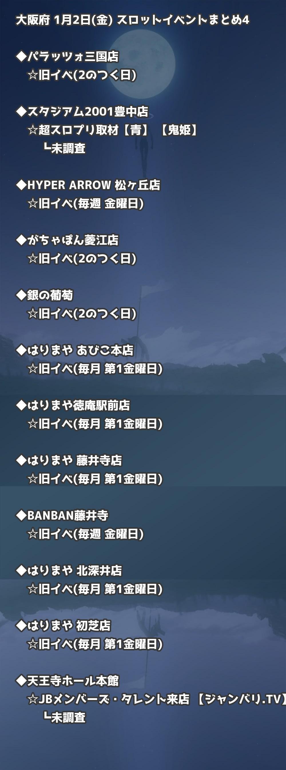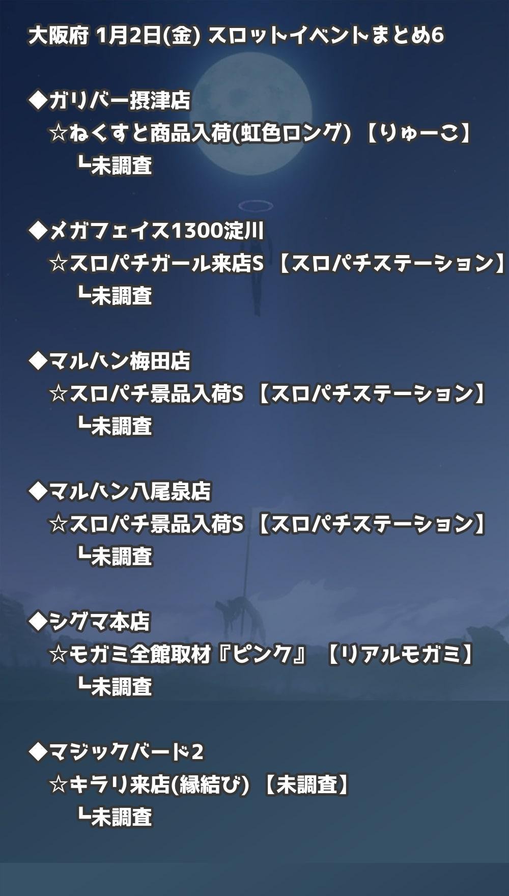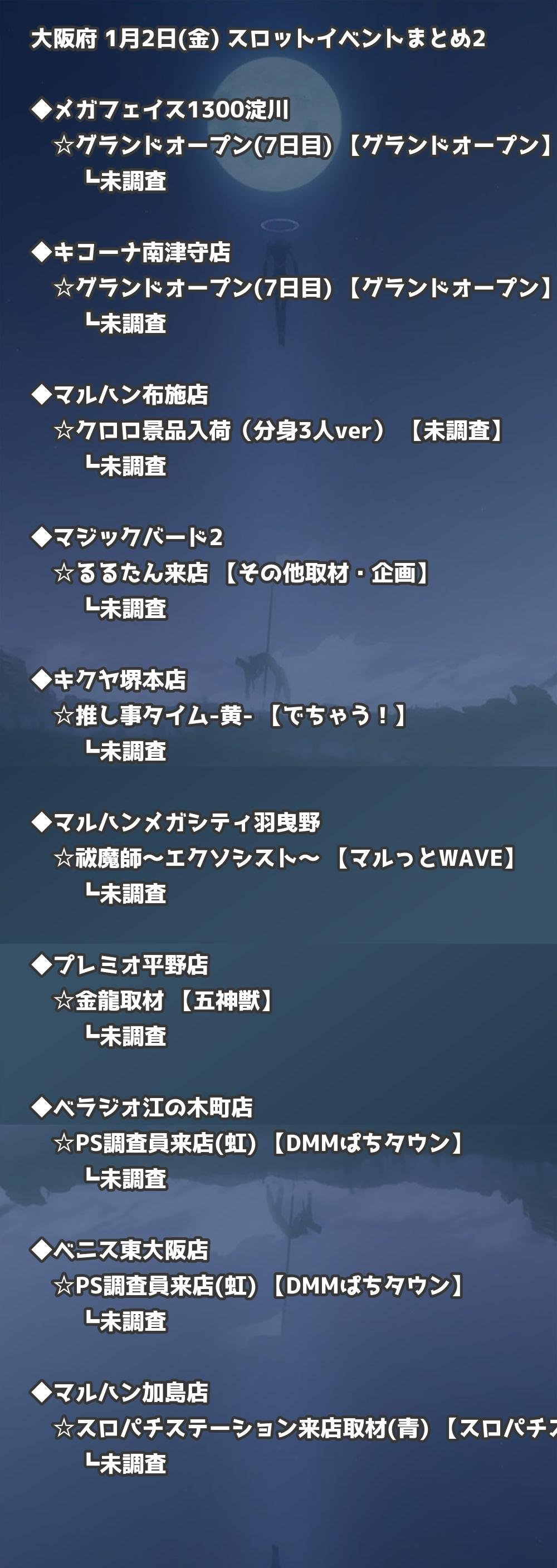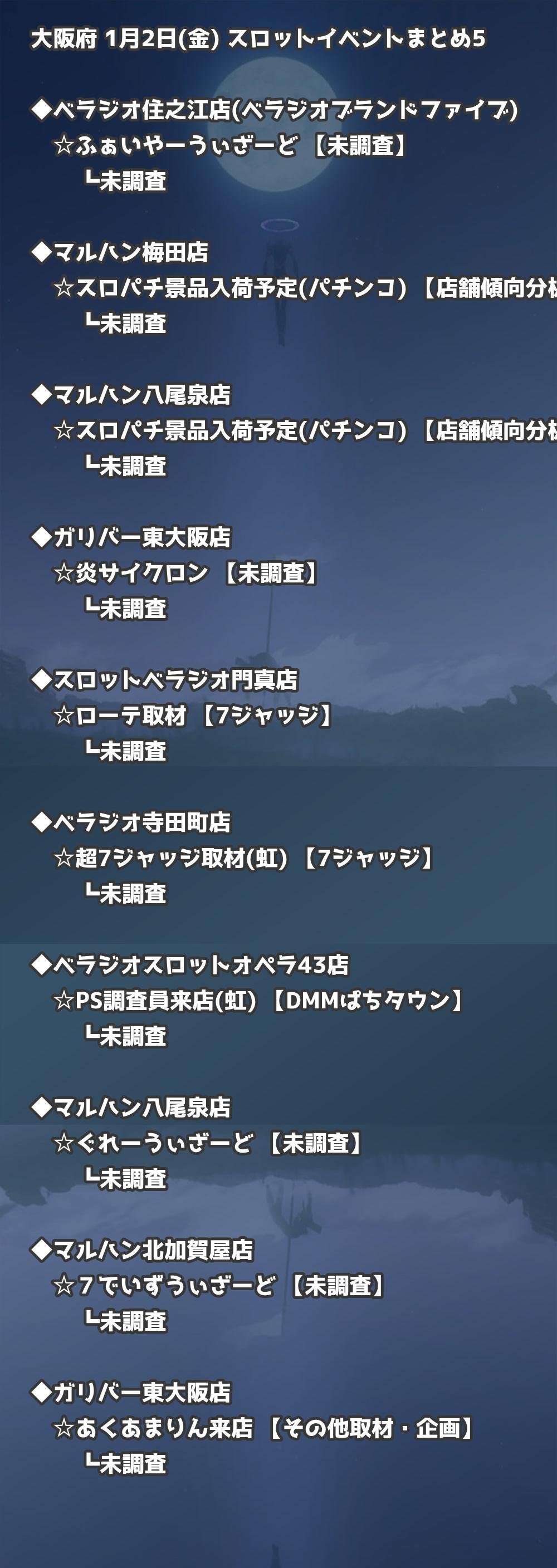 📊 大阪府 1月2日(金) 勝てるパチンコ・スロット取材店舗一覧|おすすめ順
