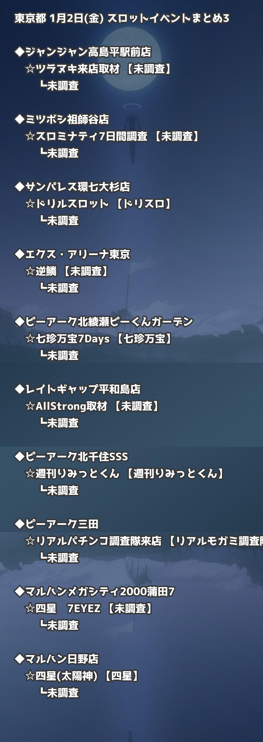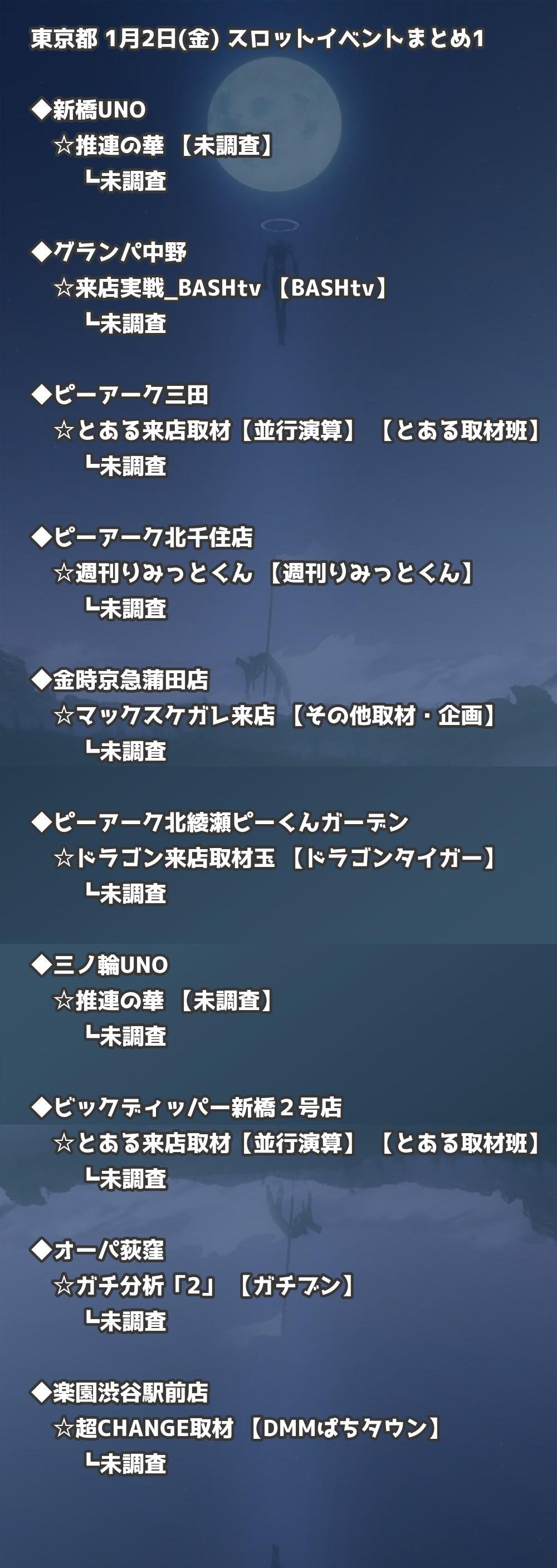 【東京都】1月2日(金) パチンコホールイベント取材まとめ記事です。