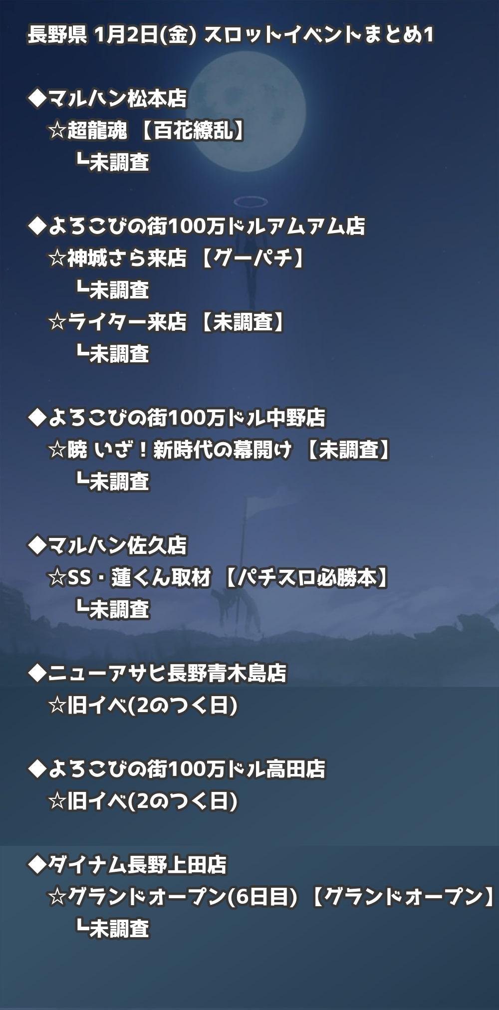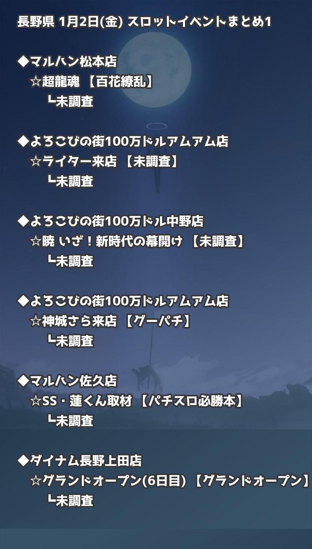 【長野県】1月2日(金) パチンコホールイベント取材まとめ記事です。