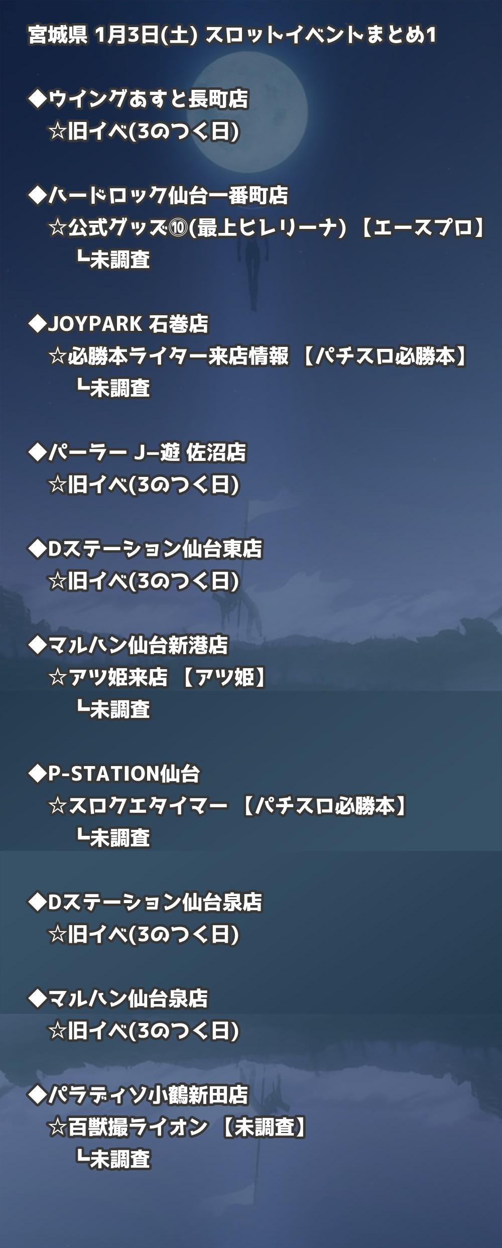 【宮城県】1月3日(土) パチンコホールイベント取材まとめ記事です。