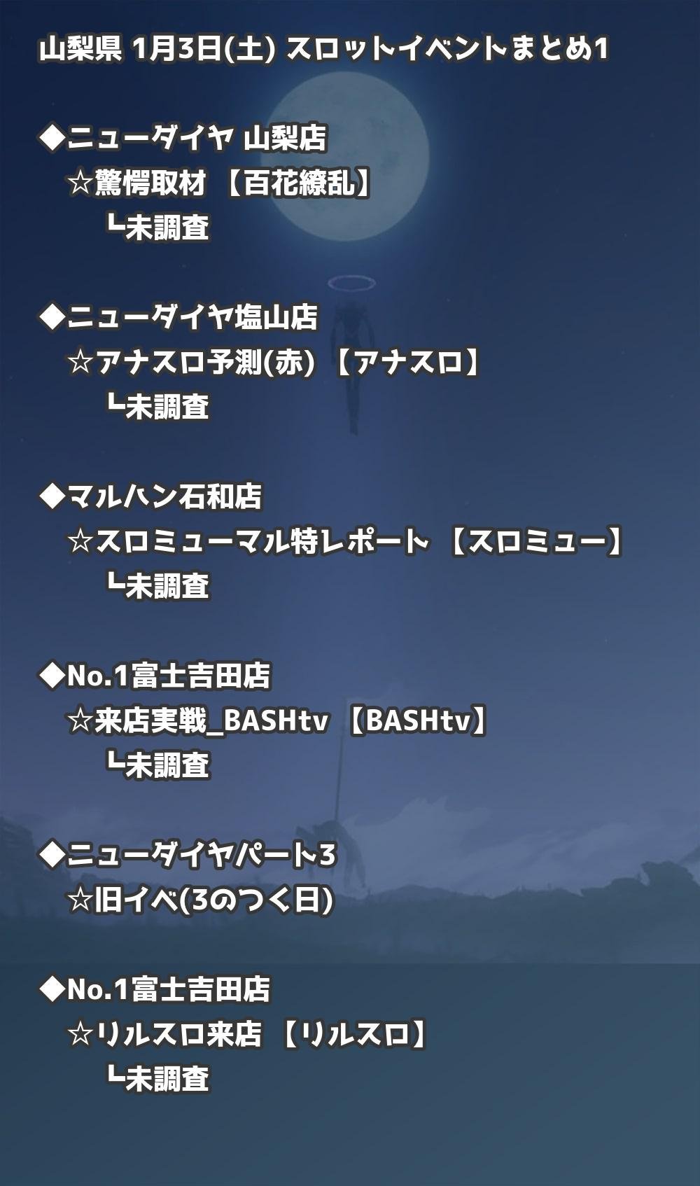 📊 山梨県 1月3日(土) 勝てるパチンコ・スロット取材店舗一覧|おすすめ順