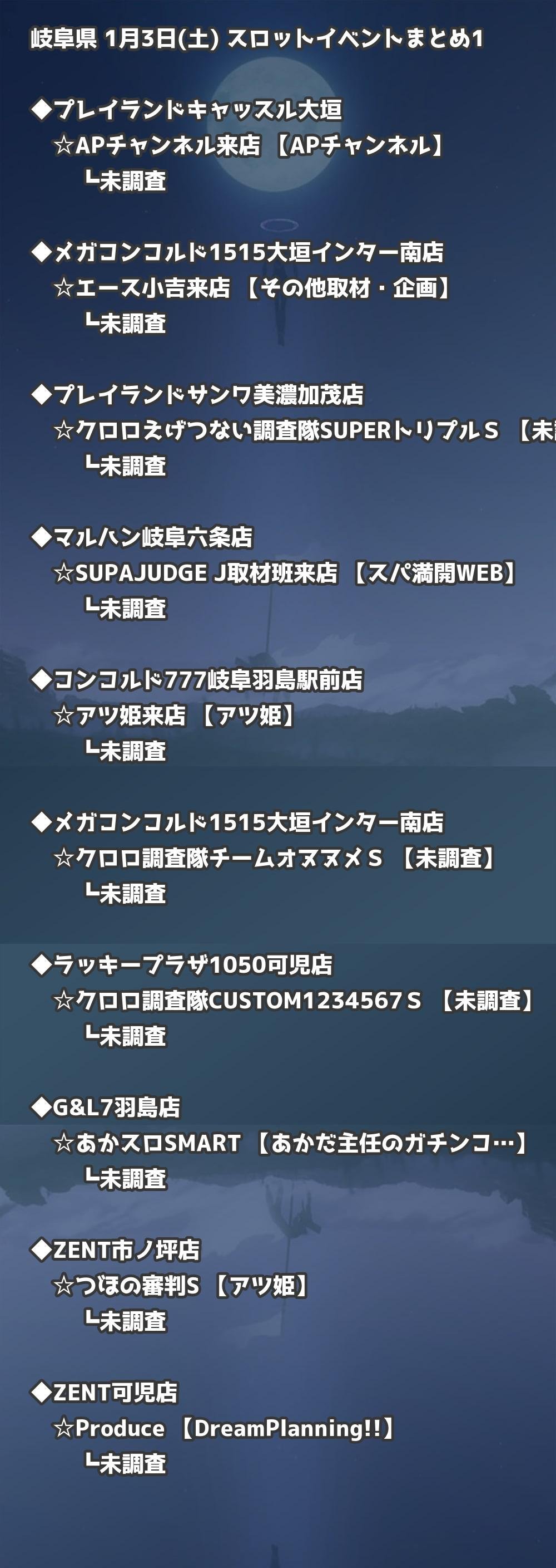 📊 岐阜県 1月3日(土) 勝てるパチンコ・スロット取材店舗一覧|おすすめ順