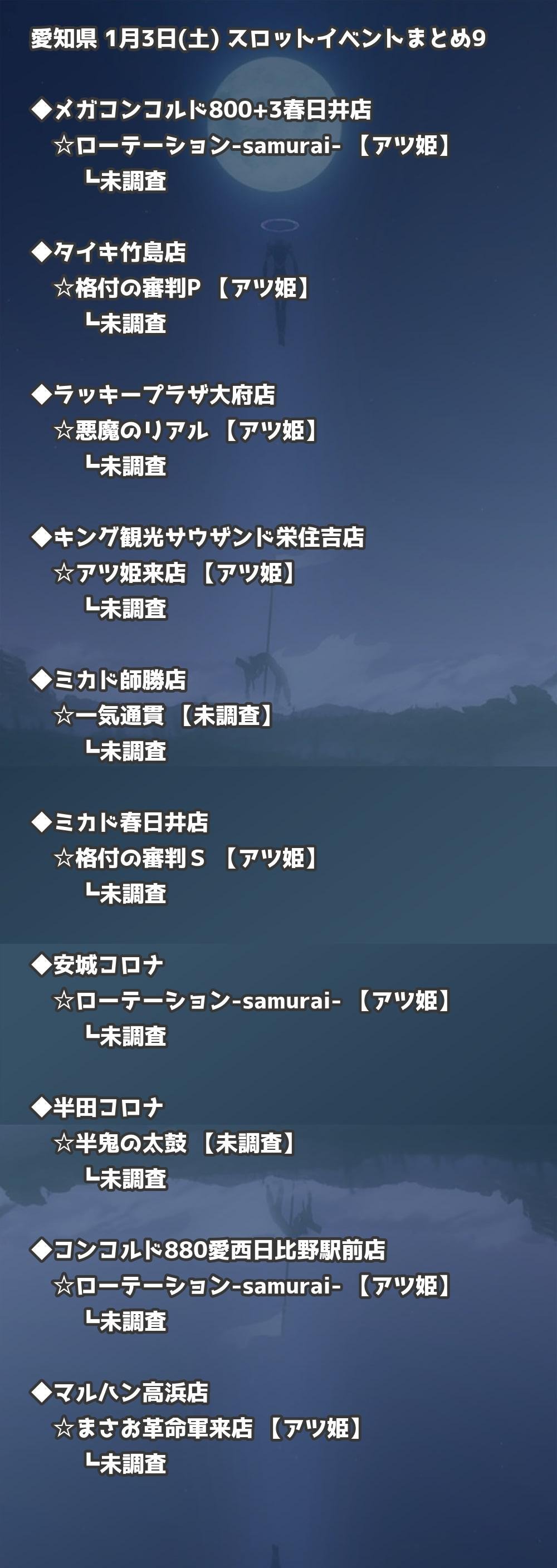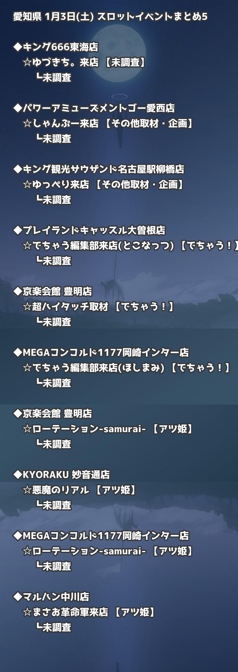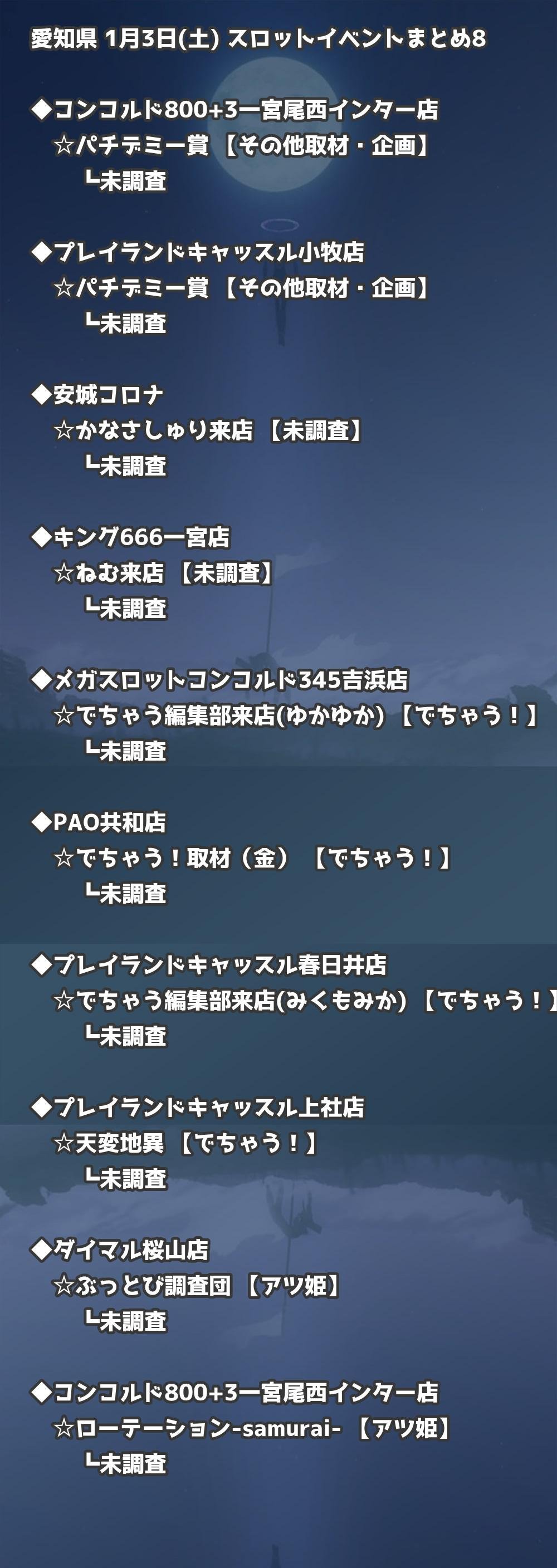 📊 愛知県 1月3日(土) 勝てるパチンコ・スロット取材店舗一覧|おすすめ順