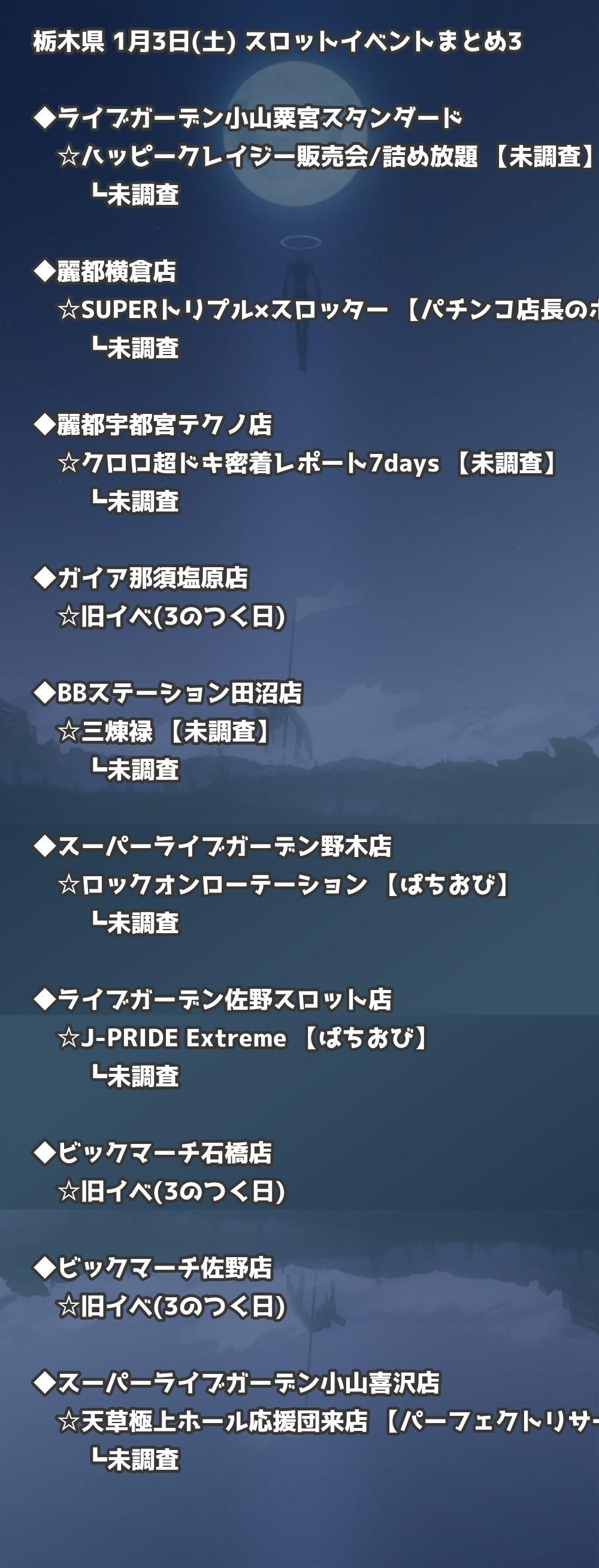 📊 栃木県 1月3日(土) 勝てるパチンコ・スロット取材店舗一覧|おすすめ順