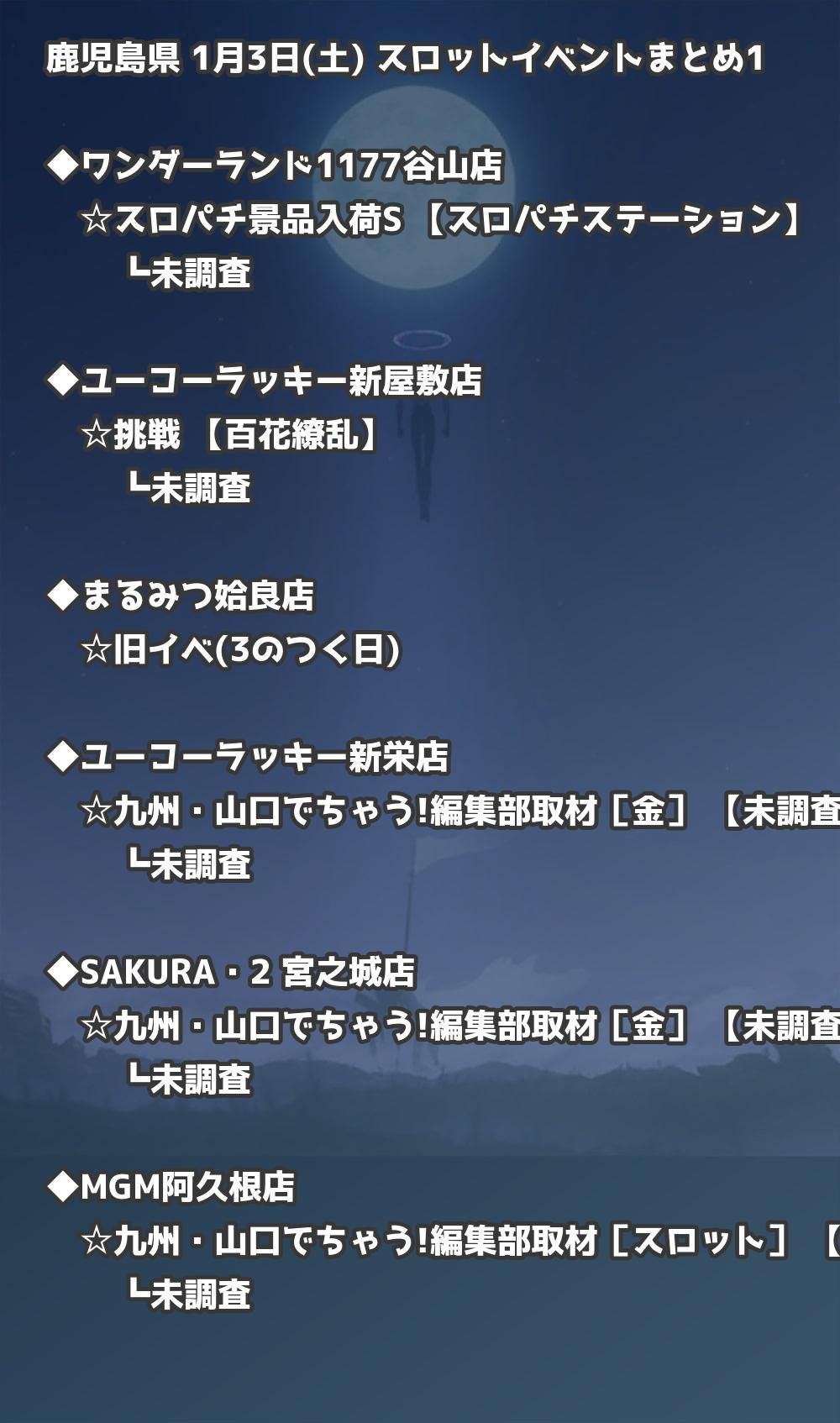 📊 鹿児島県 1月3日(土) 勝てるパチンコ・スロット取材店舗一覧|おすすめ順