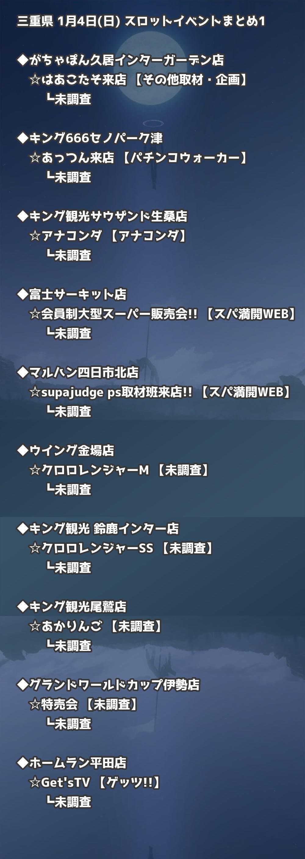 📊 三重県 1月4日(日) 勝てるパチンコ・スロット取材店舗一覧|おすすめ順