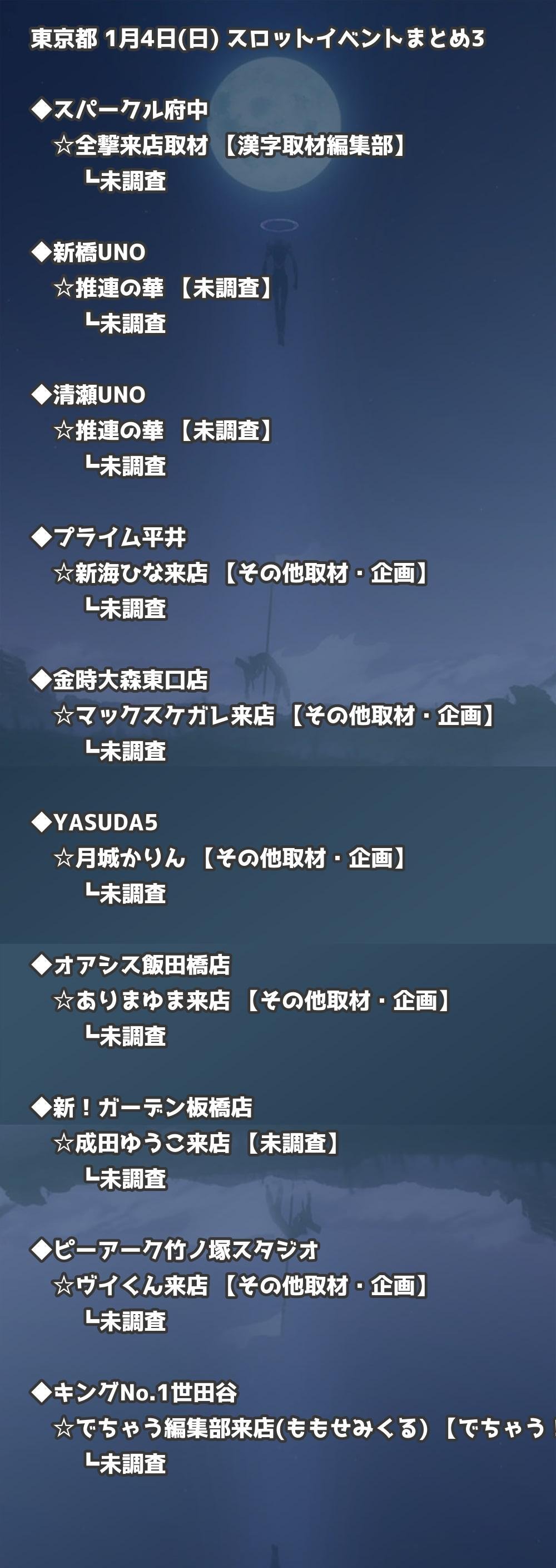 【東京都】1月4日(日) パチンコホールイベント取材まとめ記事です。