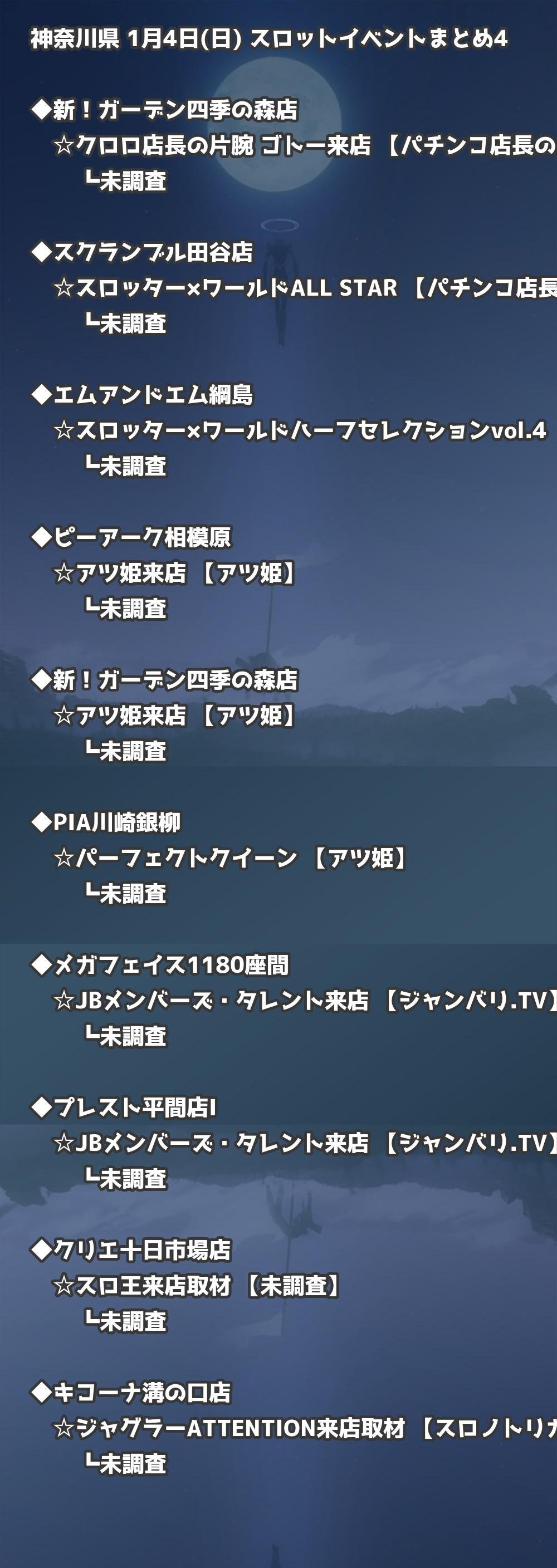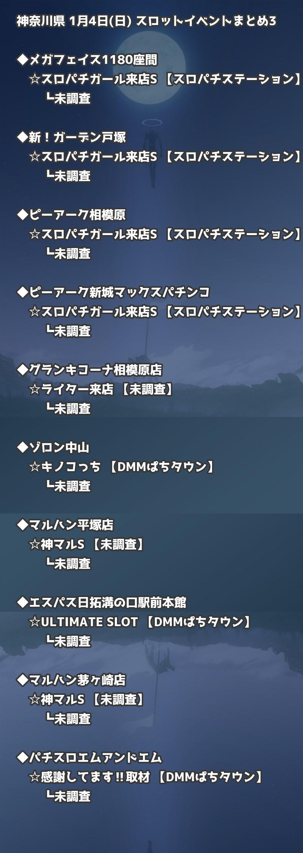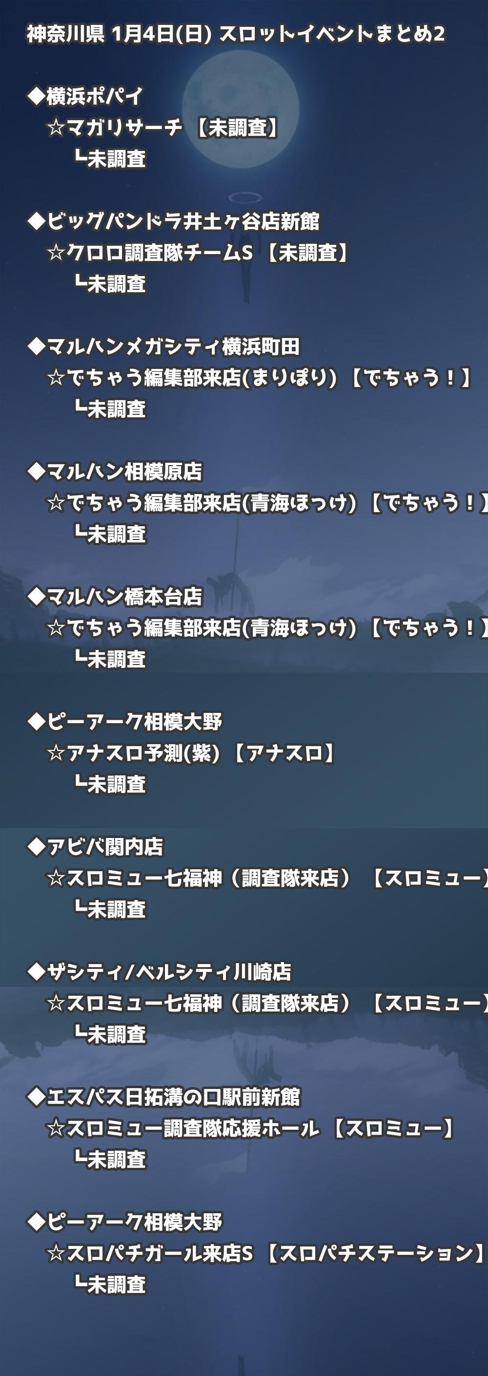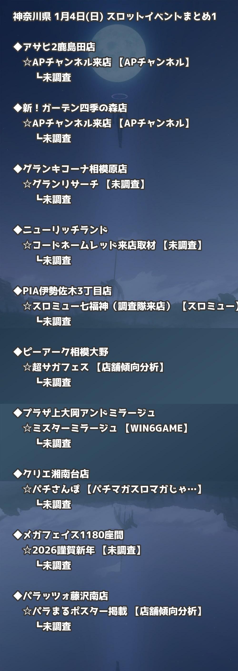 📊 神奈川県 1月4日(日) 勝てるパチンコ・スロット取材店舗一覧|おすすめ順