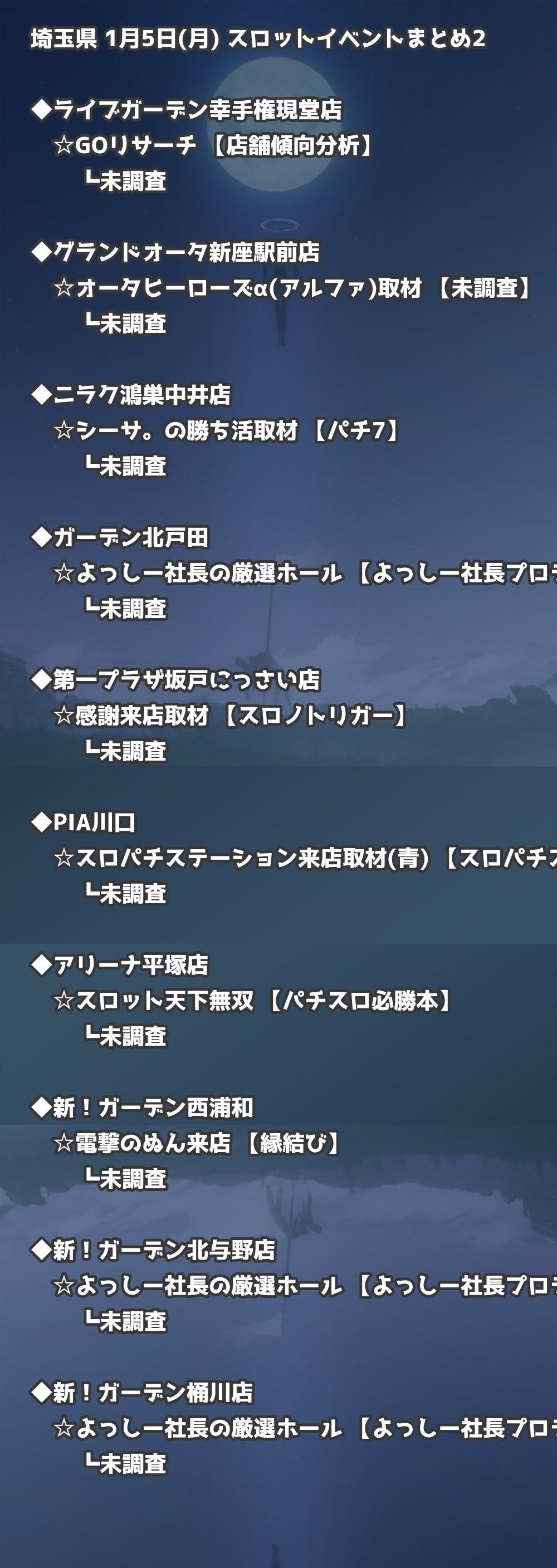 【埼玉県】1月5日(月) パチンコホールイベント取材まとめ記事です。
