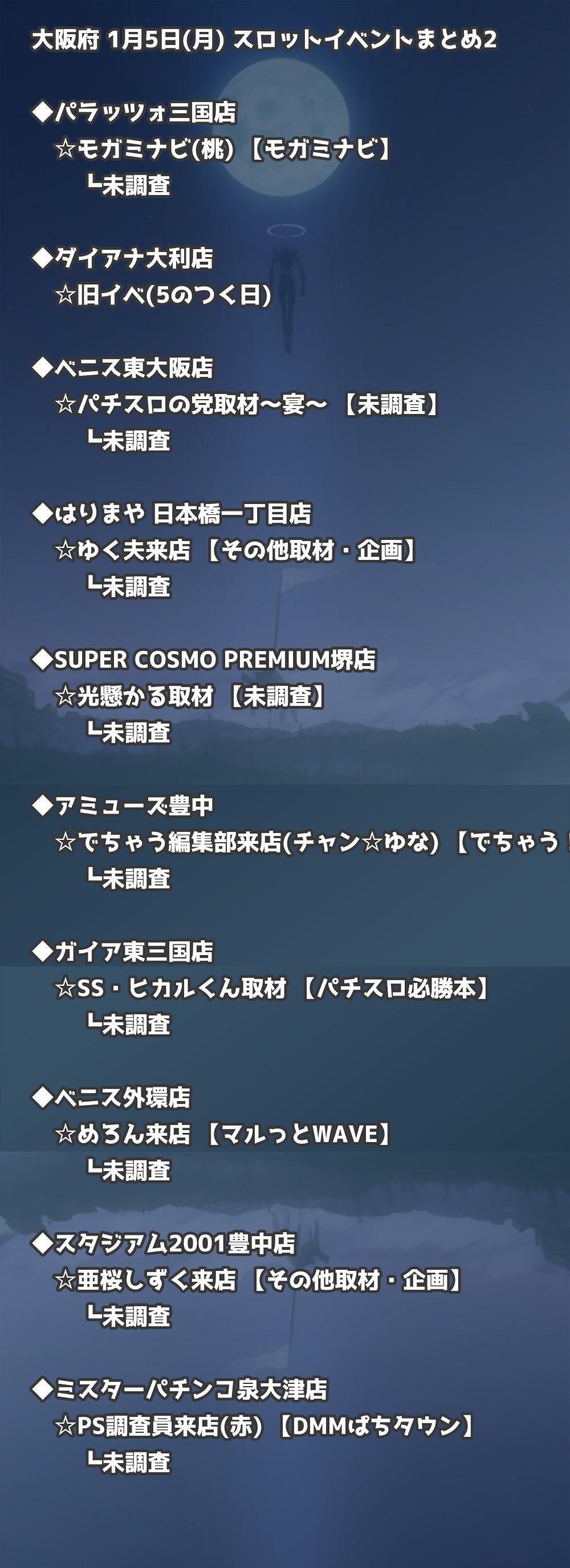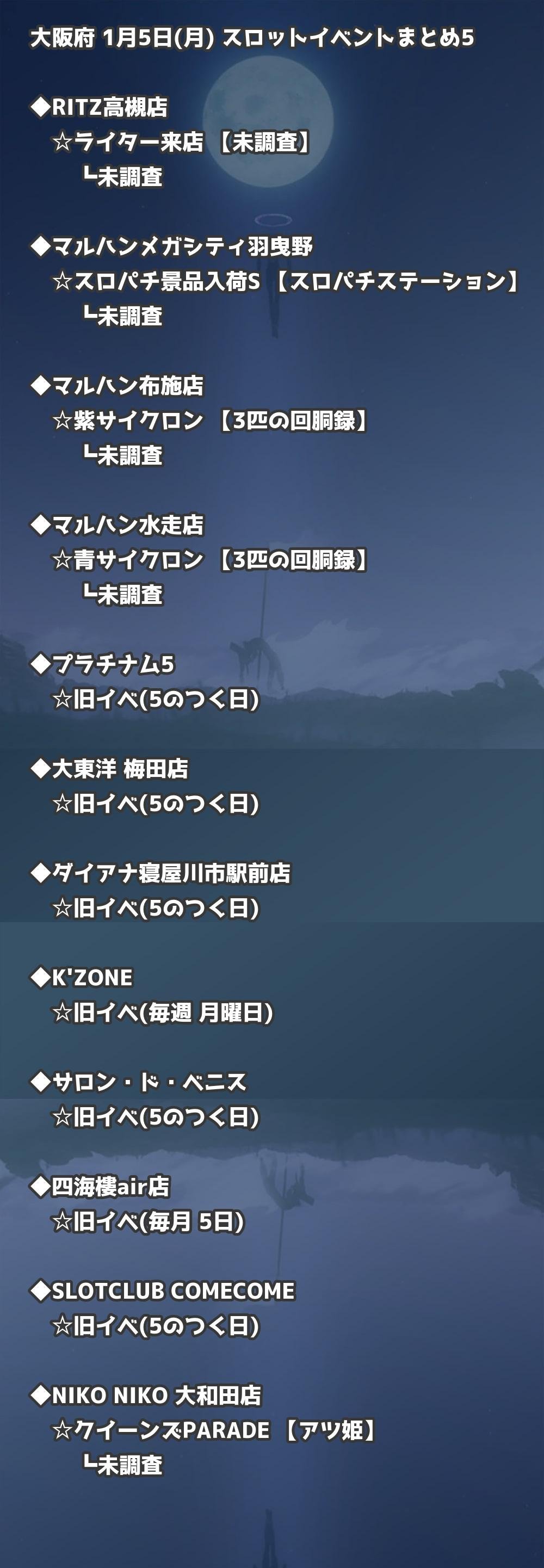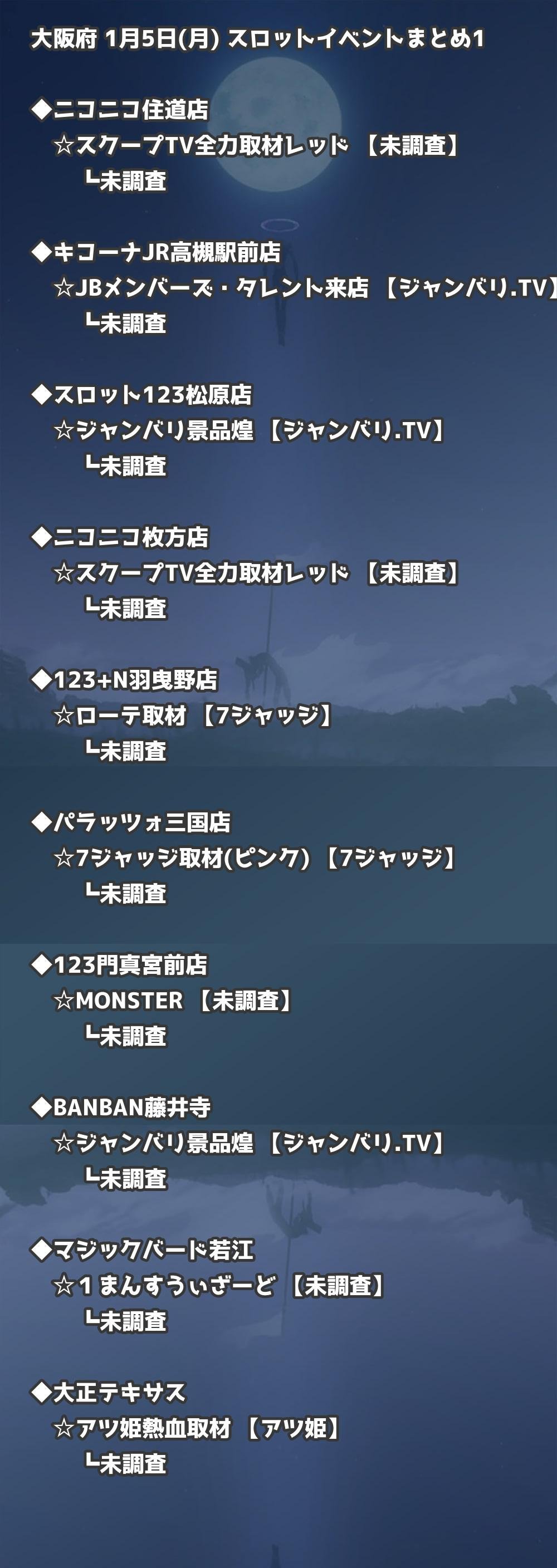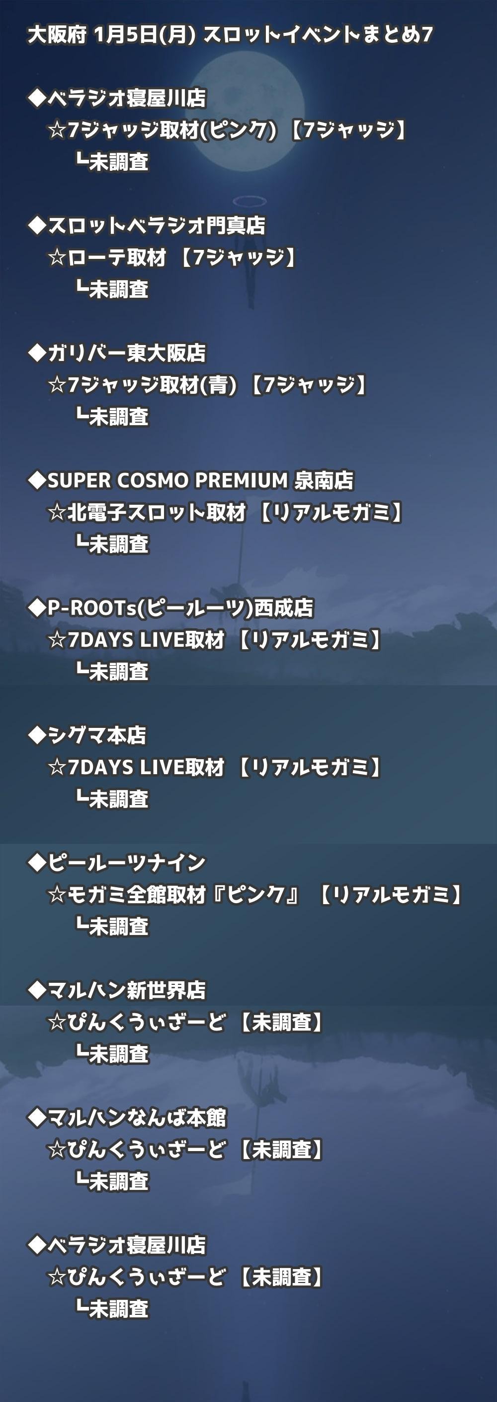 【大阪府】1月5日(月) パチンコホールイベント取材まとめ記事です。