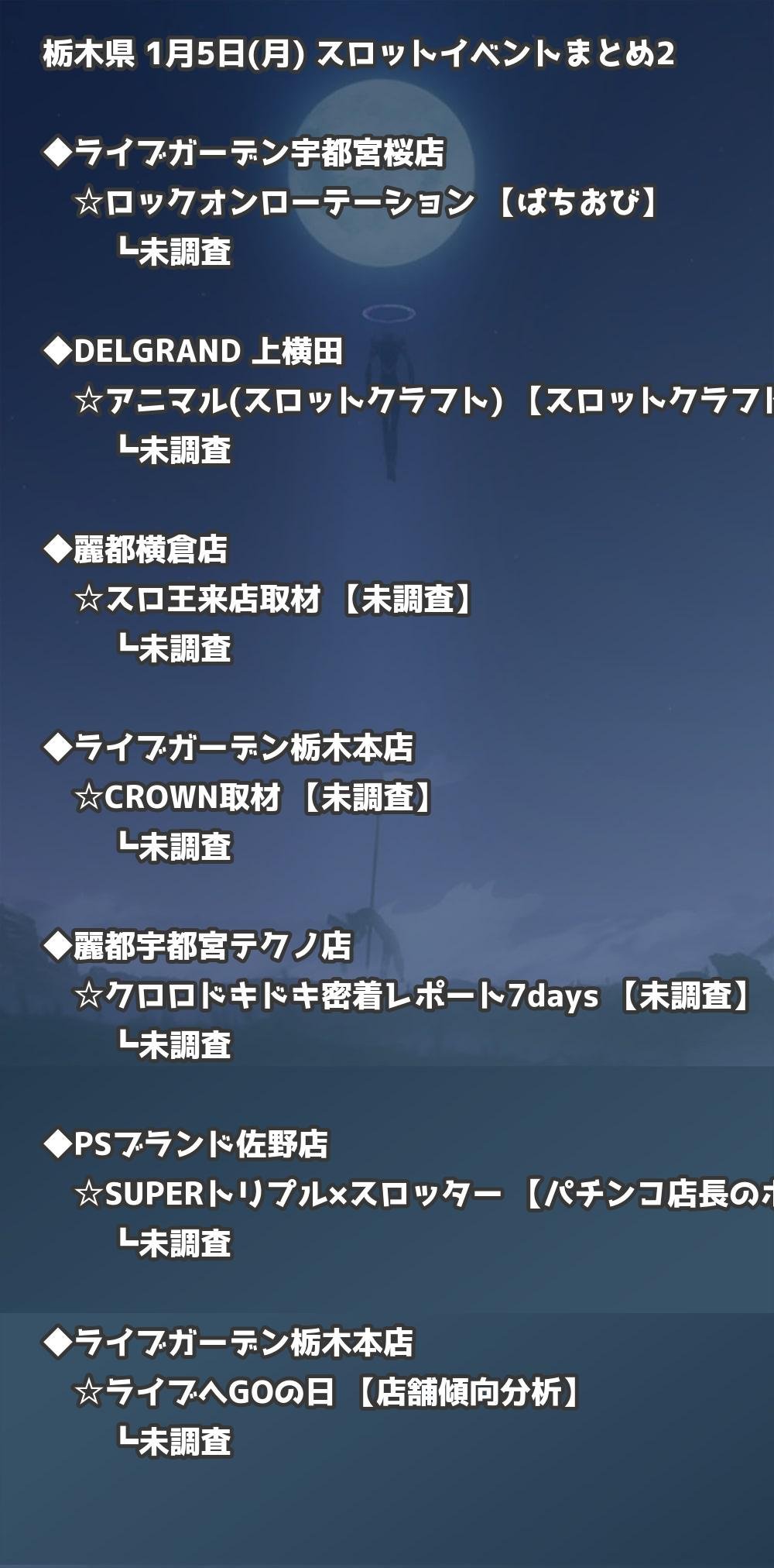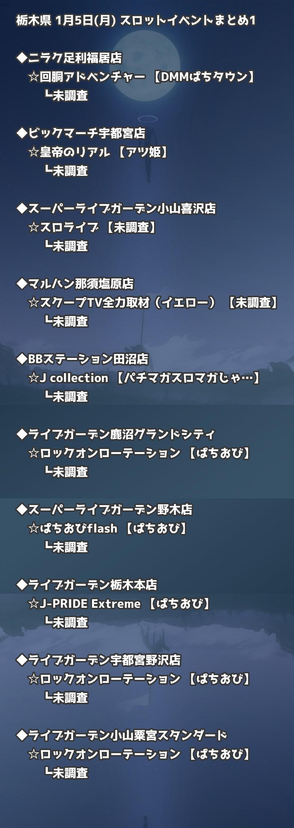 【栃木県】1月5日(月) パチンコホールイベント取材まとめ記事です。