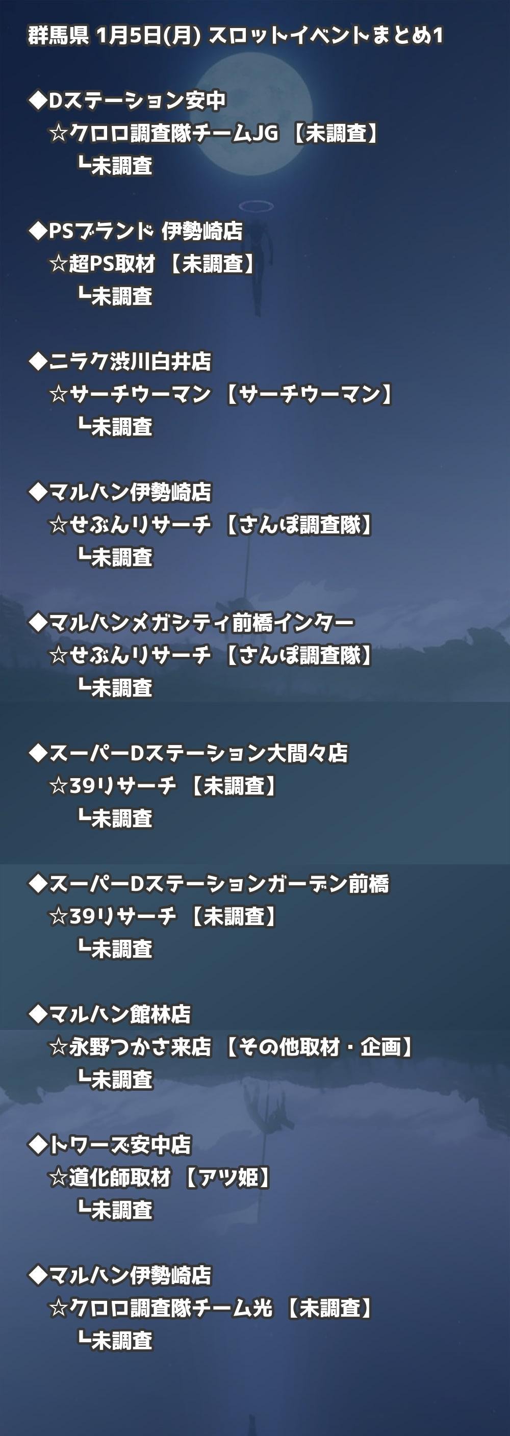 📊 群馬県 1月5日(月) 勝てるパチンコ・スロット取材店舗一覧|おすすめ順