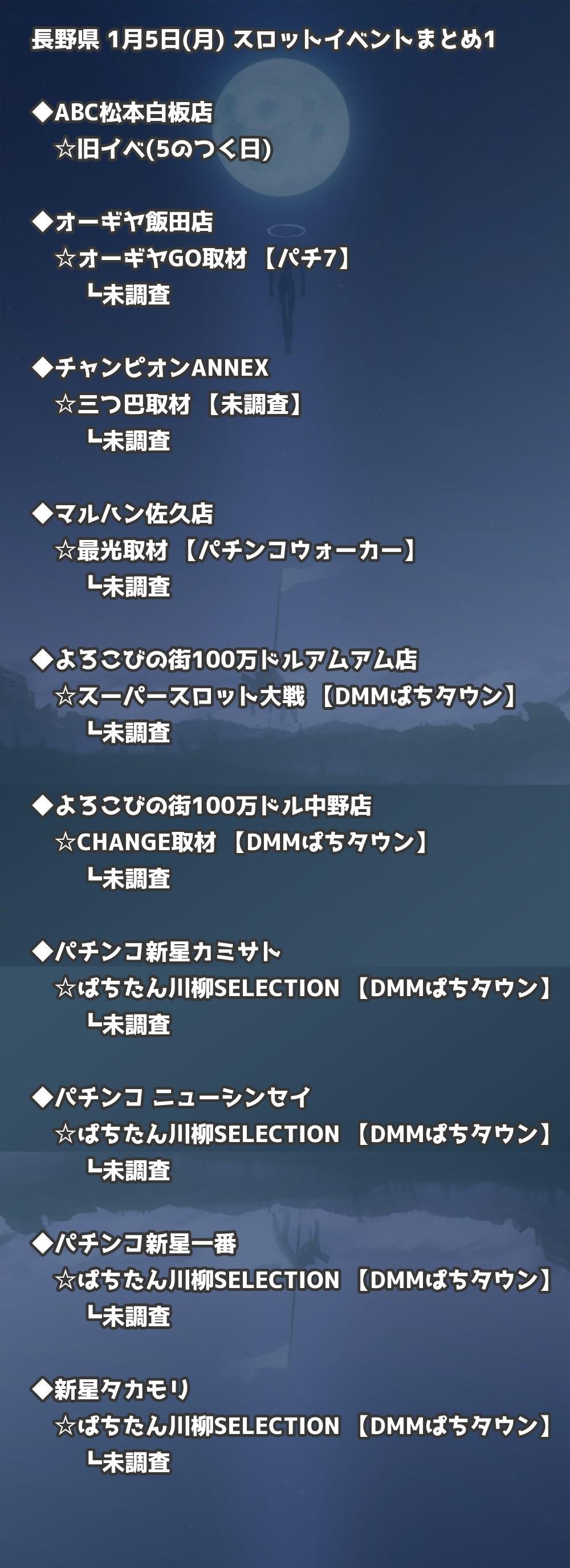📊 長野県 1月5日(月) 勝てるパチンコ・スロット取材店舗一覧|おすすめ順