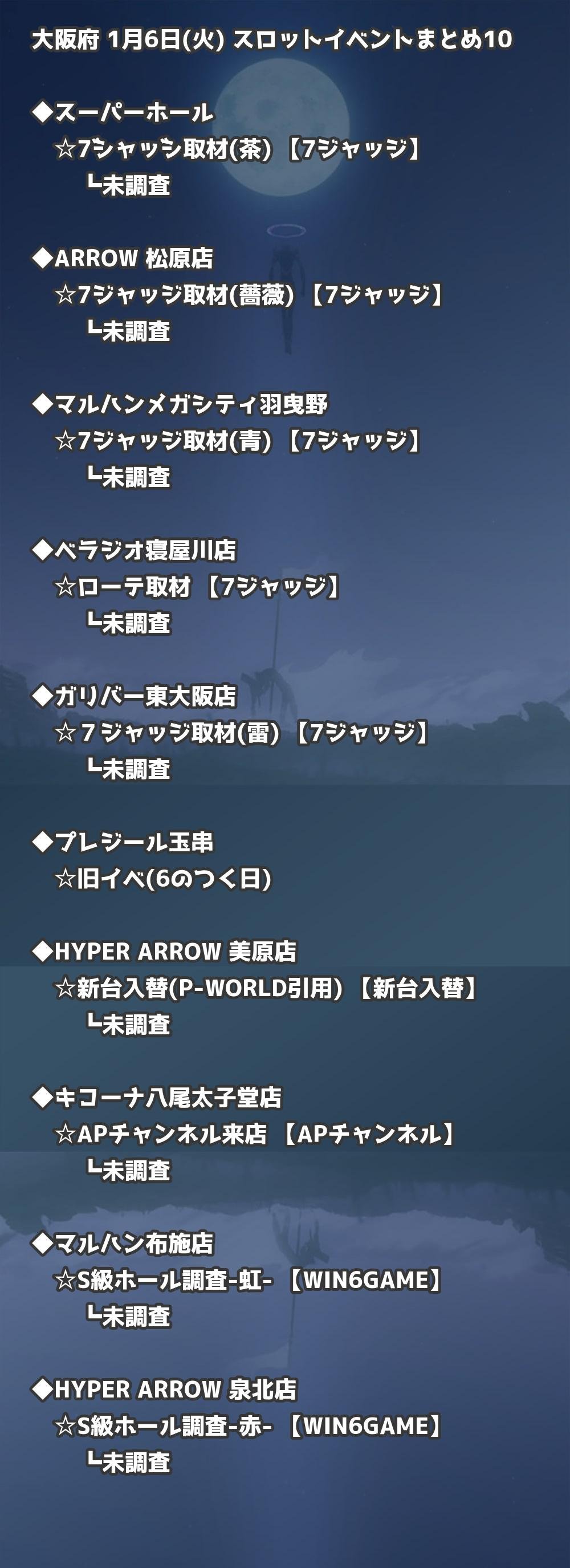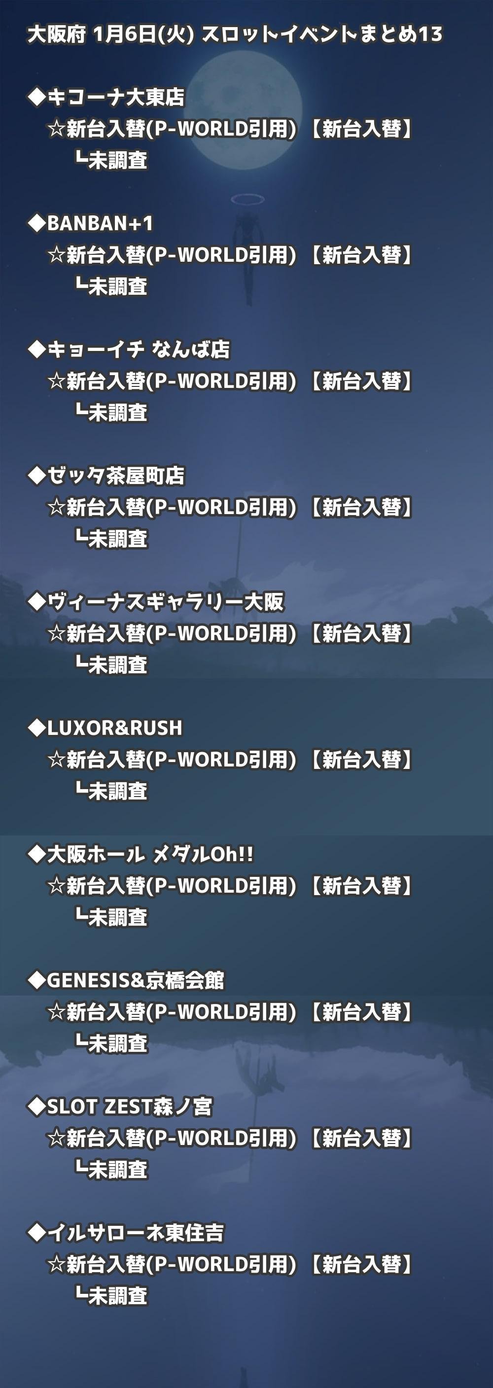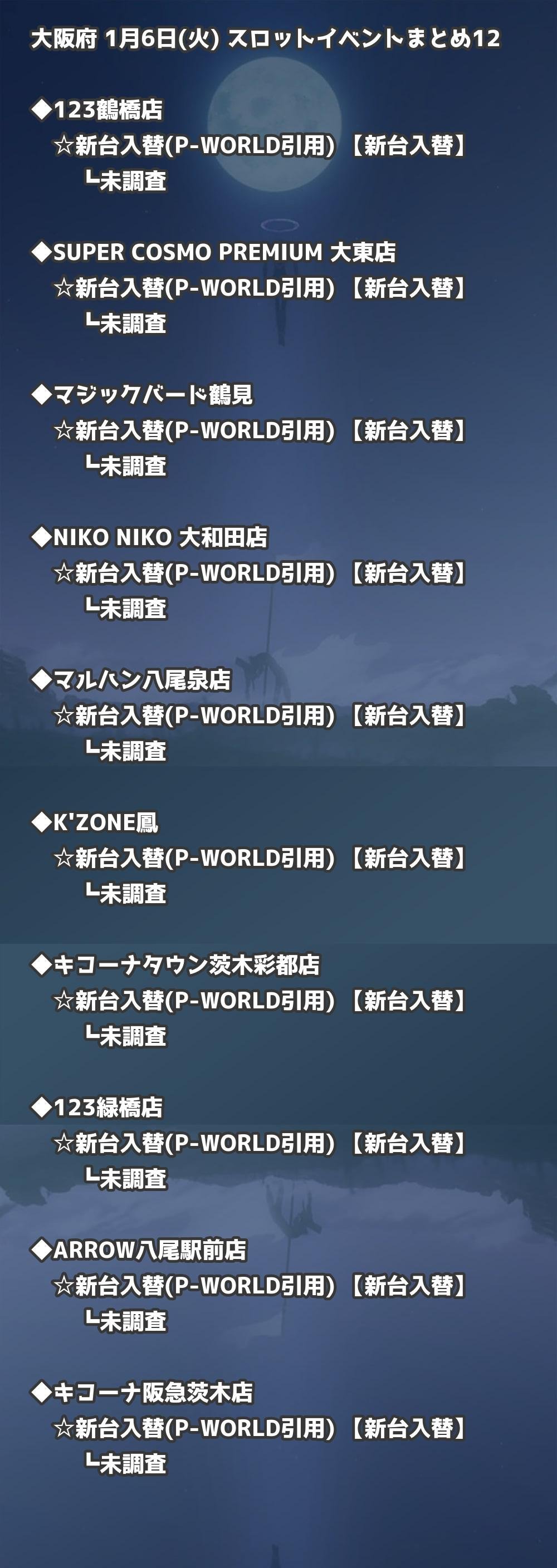 【大阪府】1月6日(火) パチンコホールイベント取材まとめ記事です。