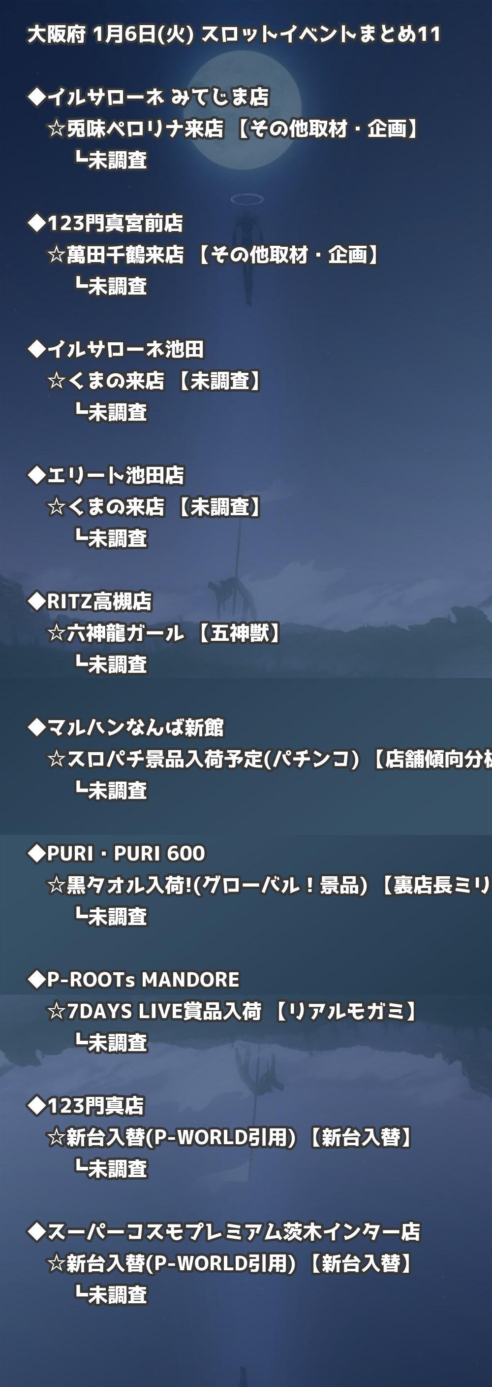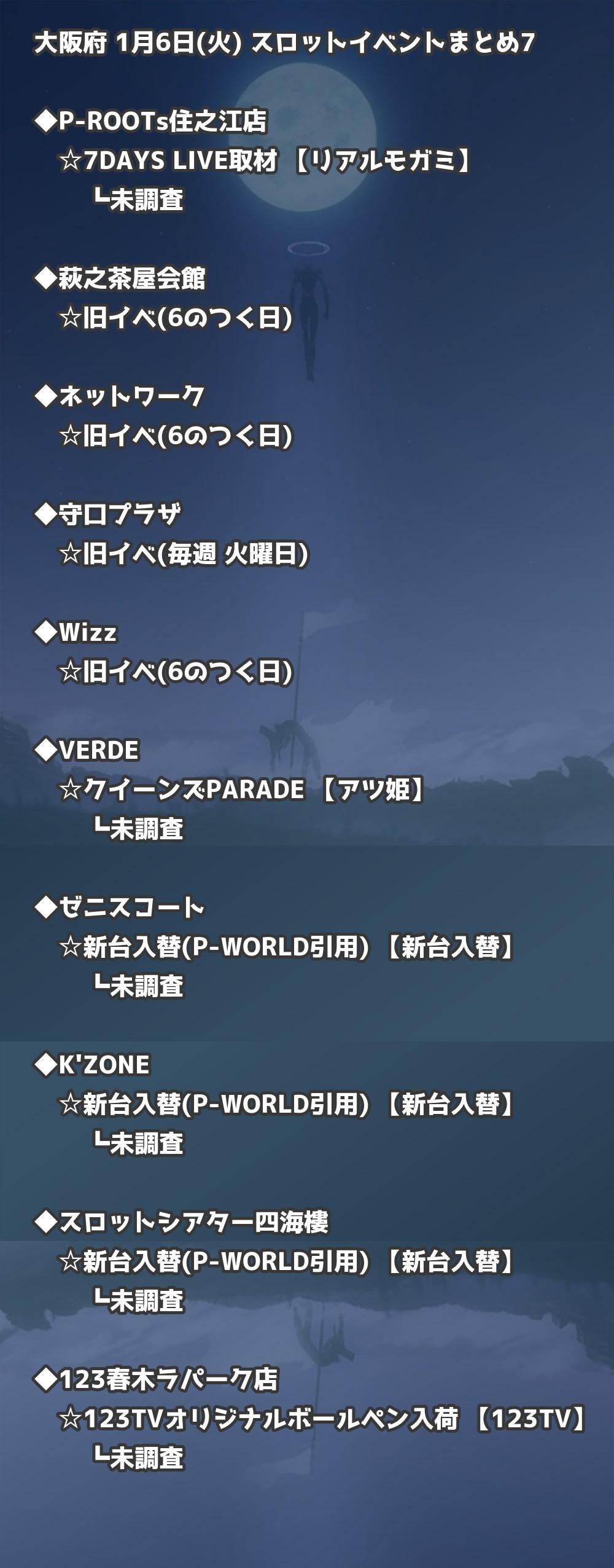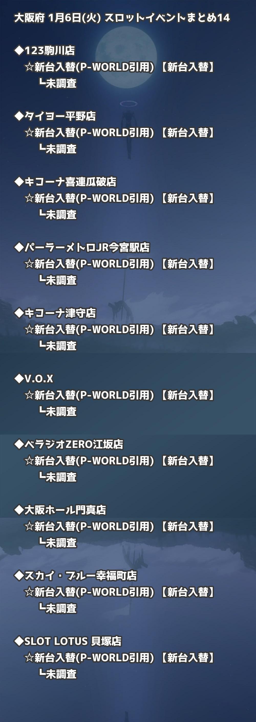 【大阪府】1月6日(火) パチンコホールイベント取材まとめ記事です。