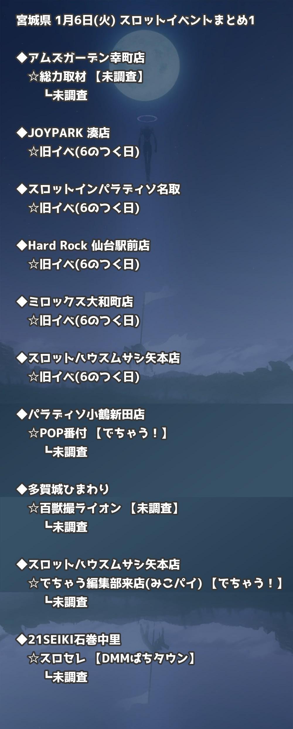 【宮城県】1月6日(火) パチンコホールイベント取材まとめ記事です。