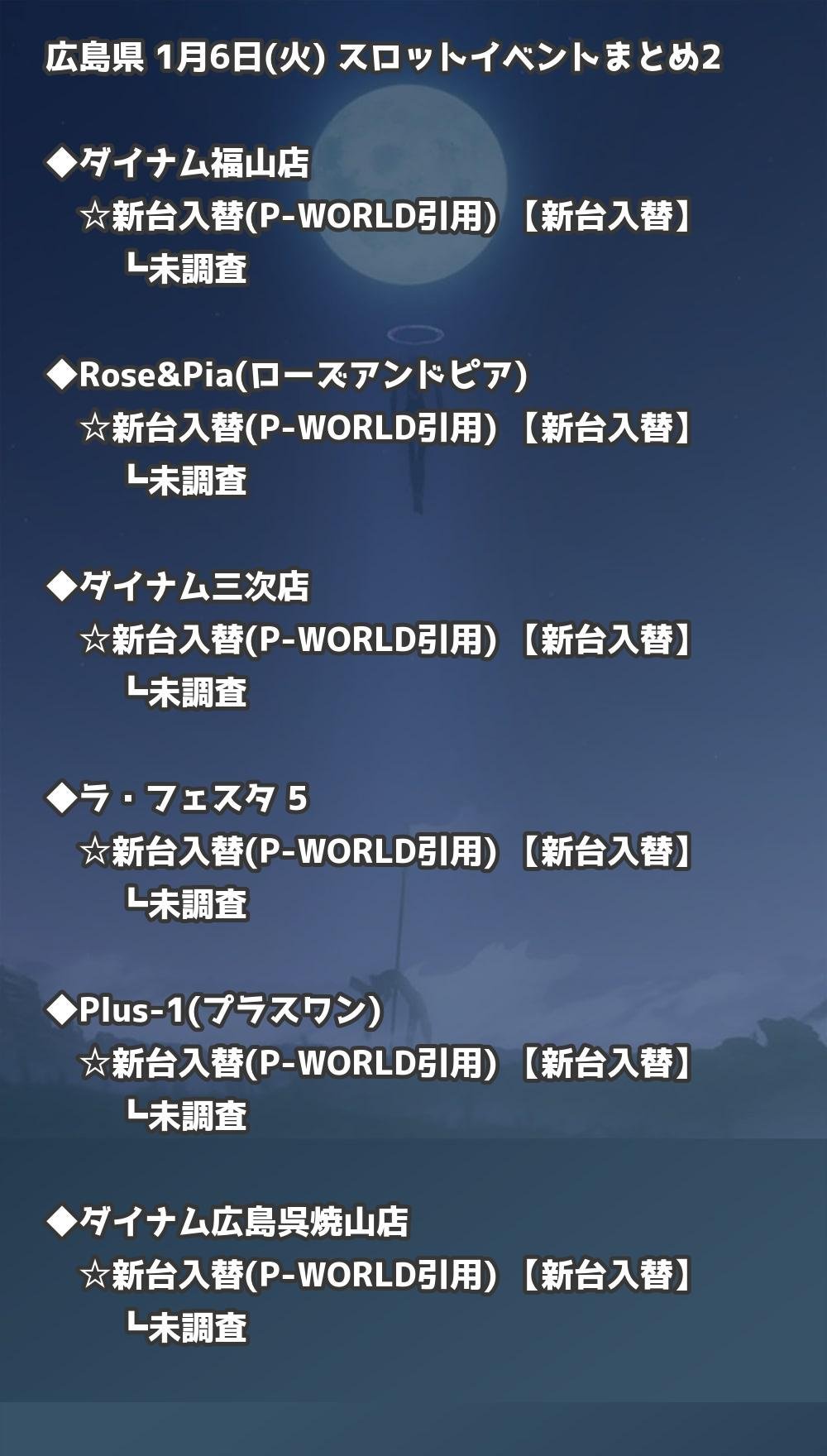 📊 広島県 1月6日(火) 勝てるパチンコ・スロット取材店舗一覧|おすすめ順