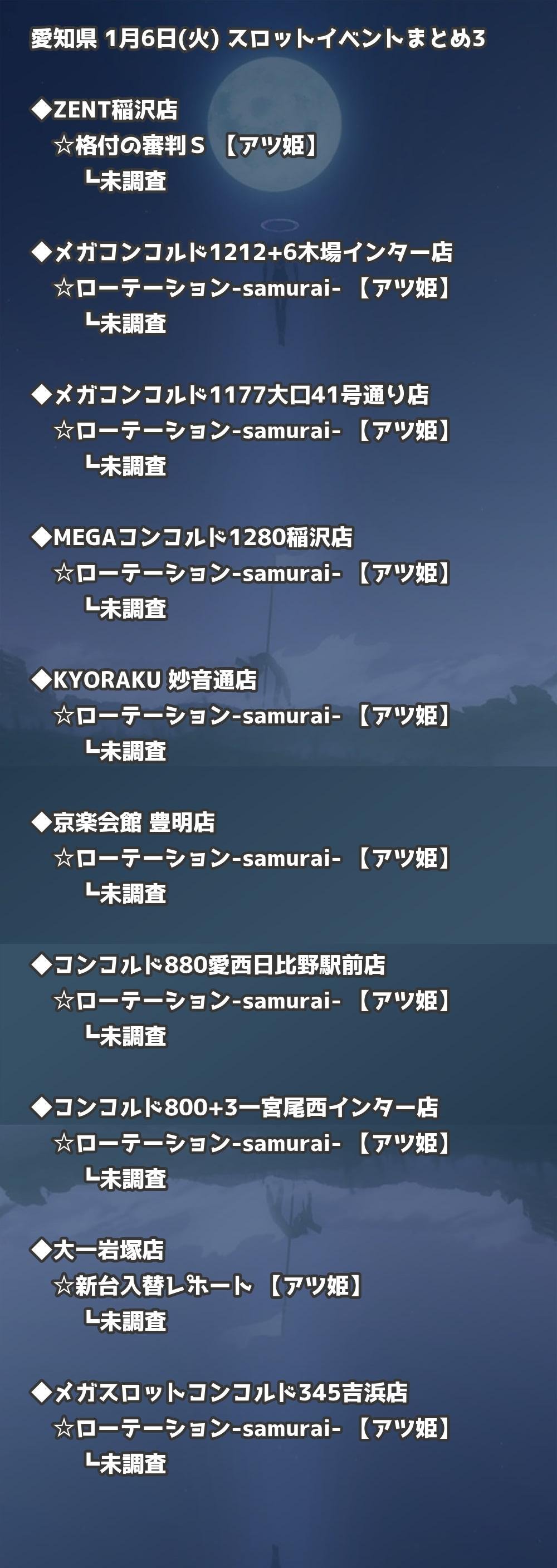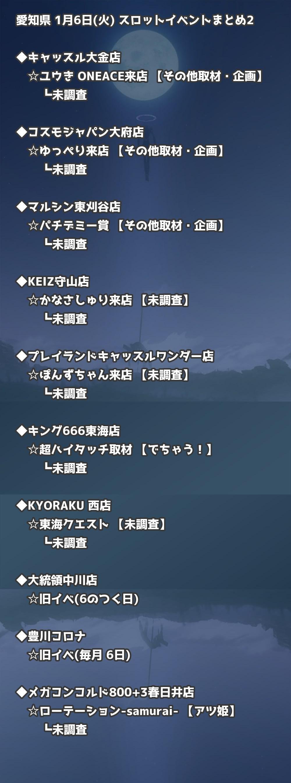 📊 愛知県 1月6日(火) 勝てるパチンコ・スロット取材店舗一覧|おすすめ順