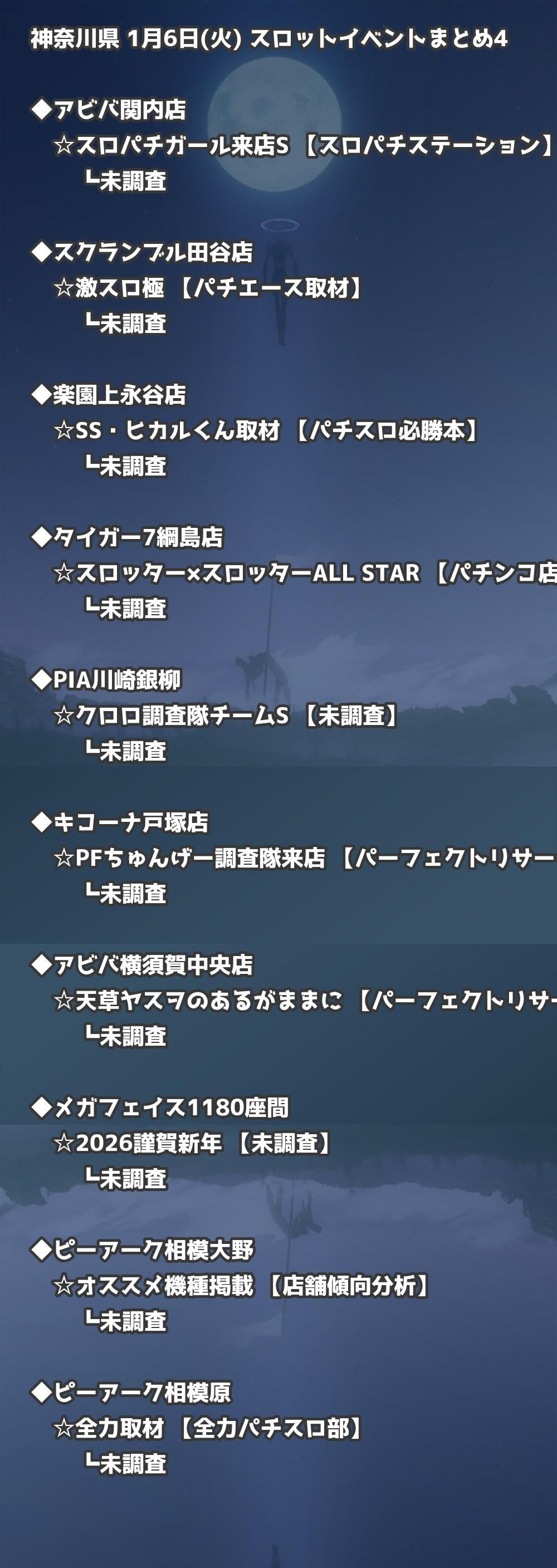 📊 神奈川県 1月6日(火) 勝てるパチンコ・スロット取材店舗一覧|おすすめ順