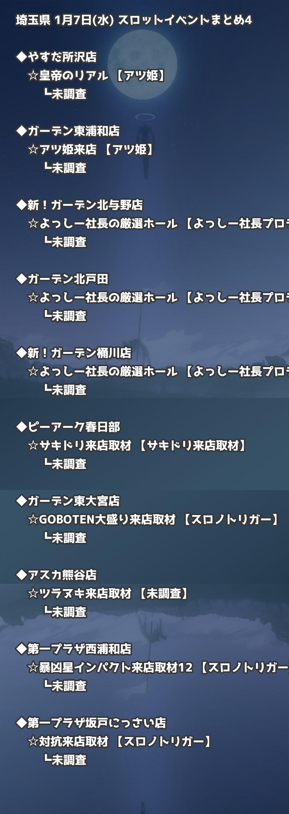📊 埼玉県 1月7日(水) 勝てるパチンコ・スロット取材店舗一覧|おすすめ順