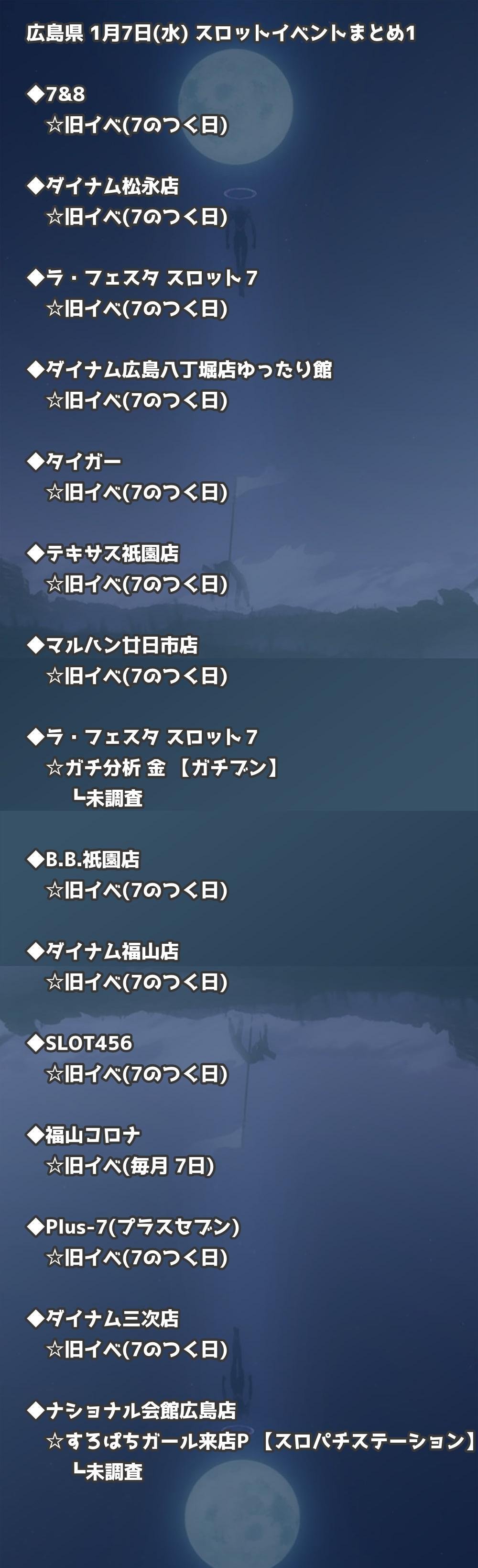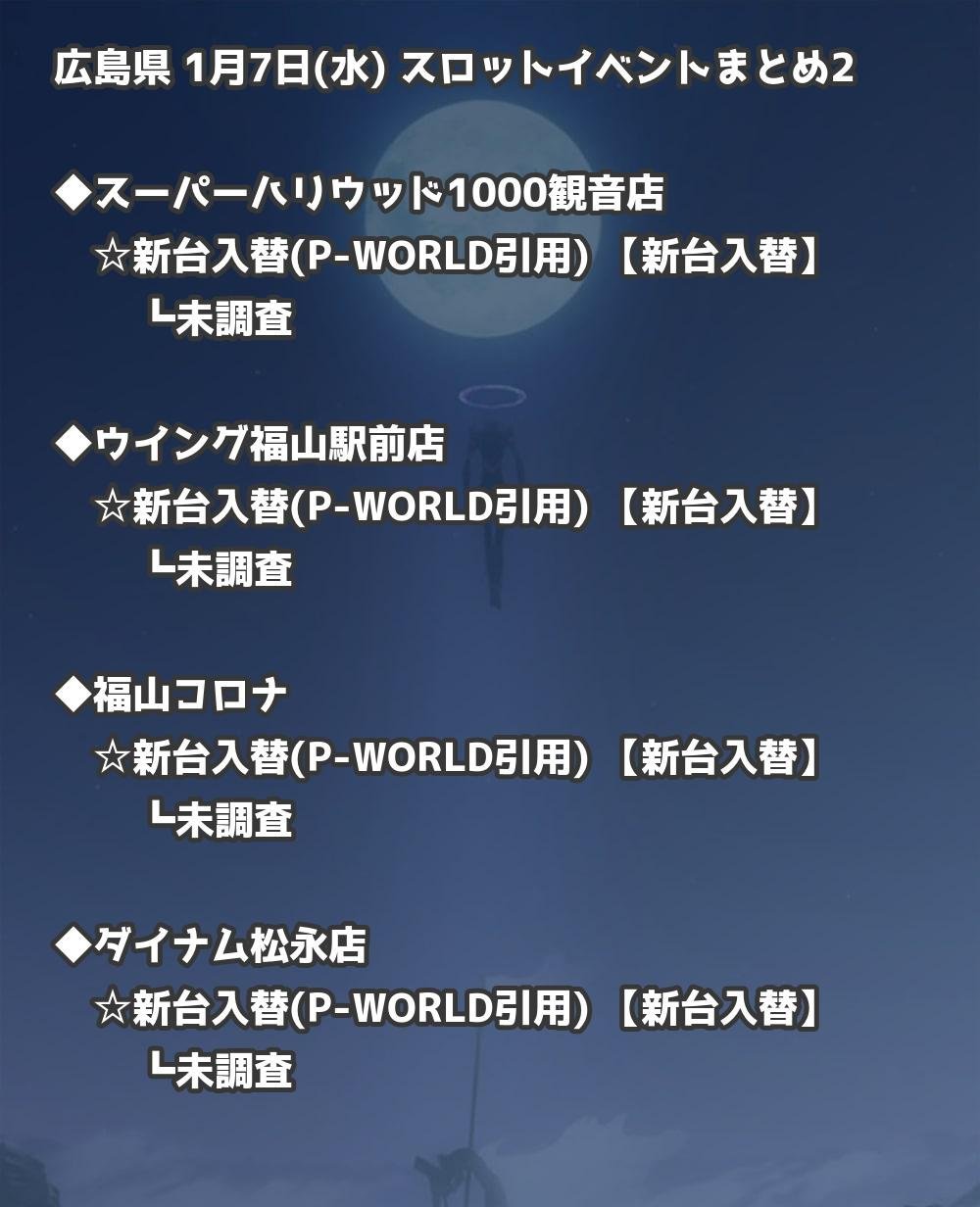 【広島県】1月7日(水) パチンコホールイベント取材まとめ記事です。