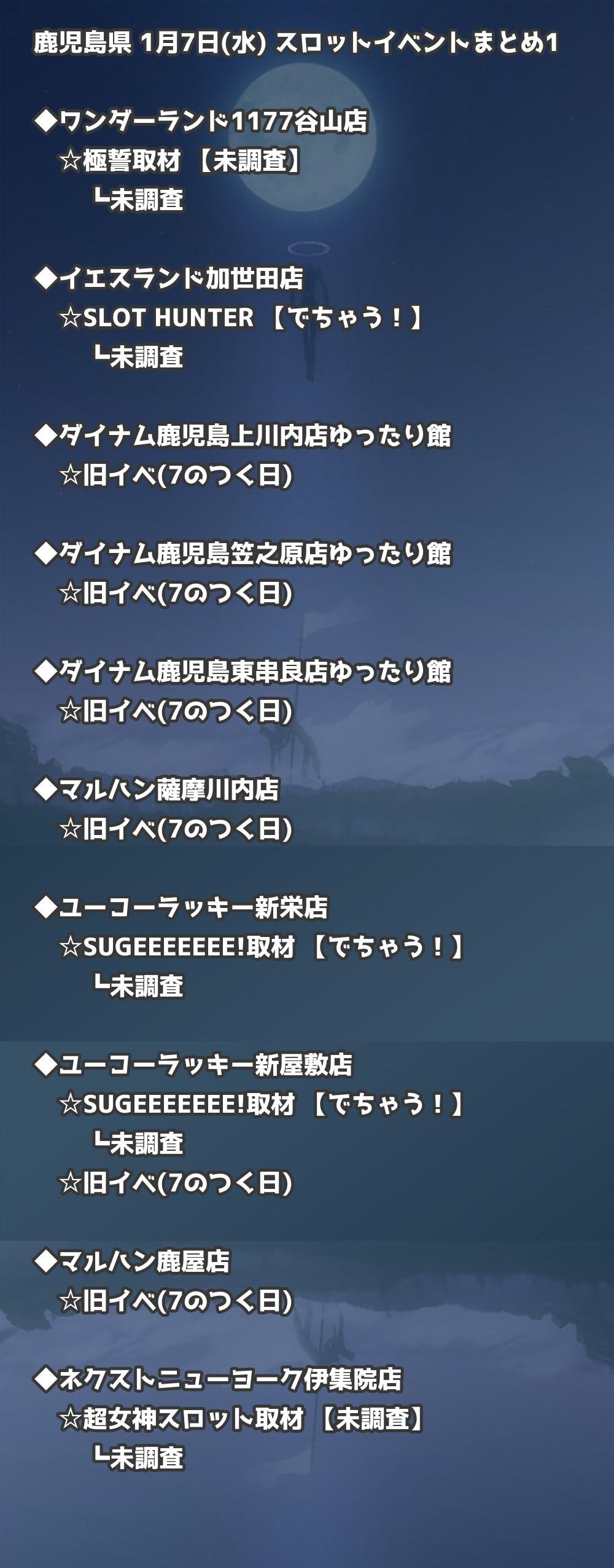 【鹿児島県】1月7日(水) パチンコホールイベント取材まとめ記事です。