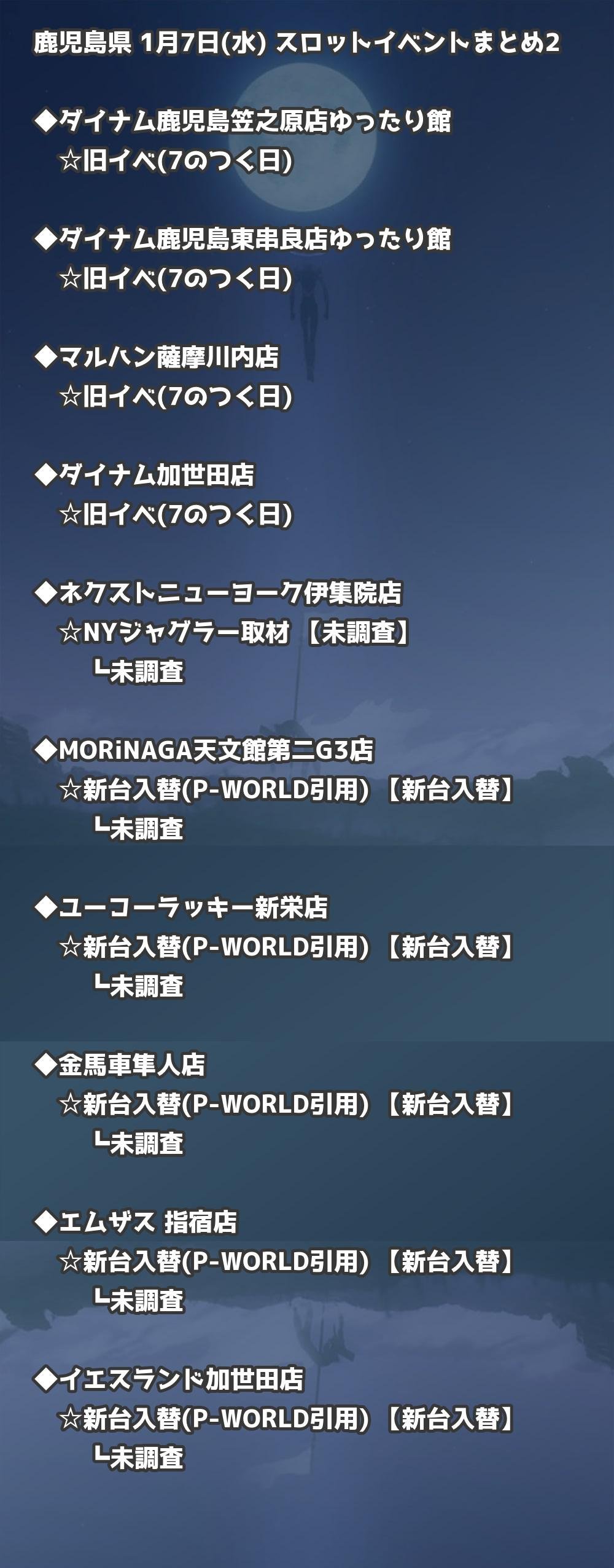 【鹿児島県】1月7日(水) パチンコホールイベント取材まとめ記事です。