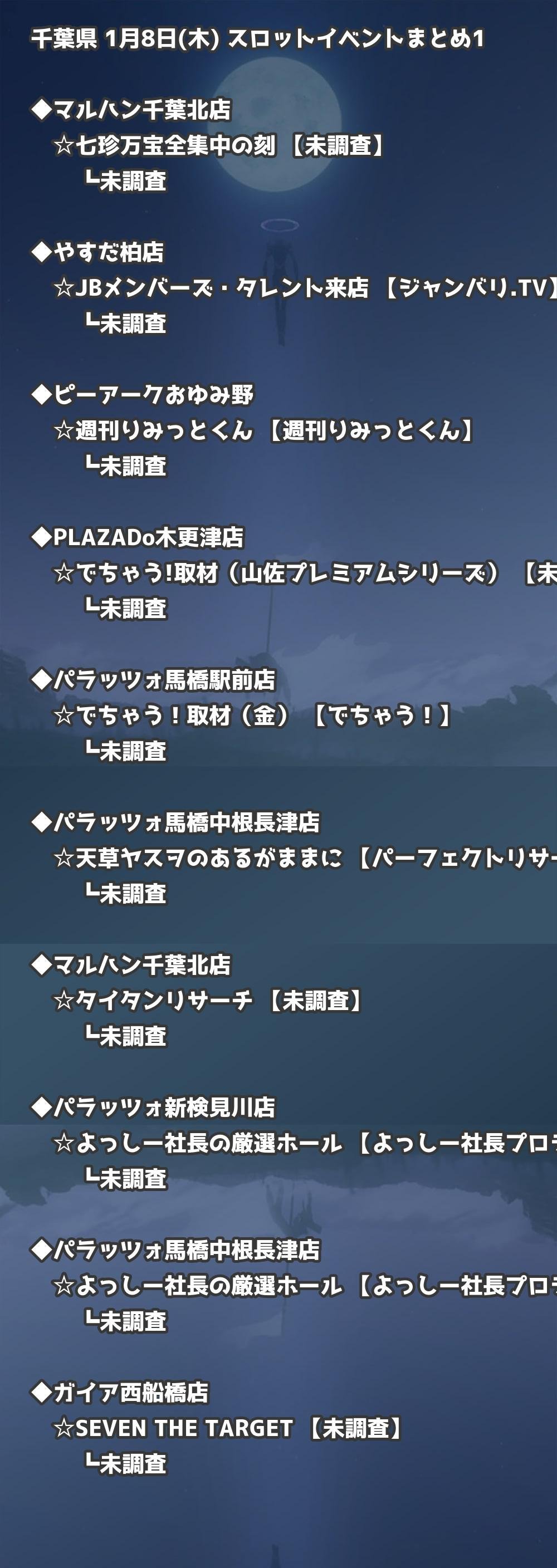 📊 千葉県 1月8日(木) 勝てるパチンコ・スロット取材店舗一覧|おすすめ順