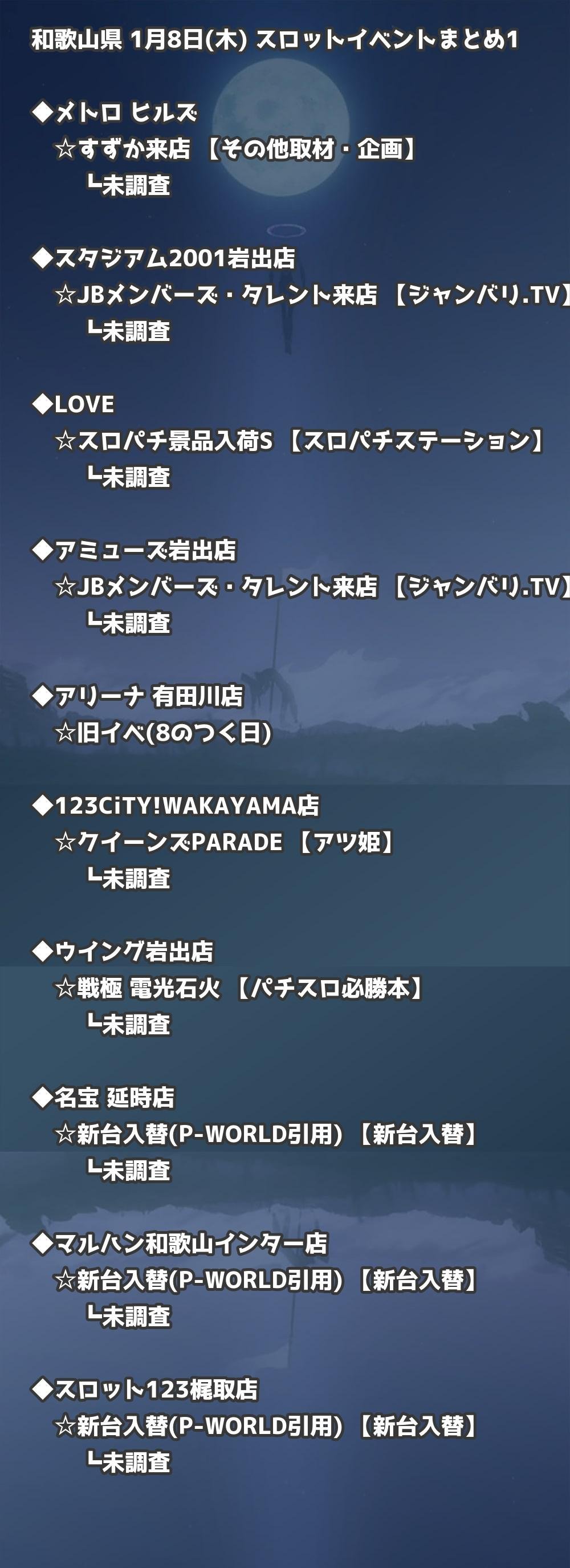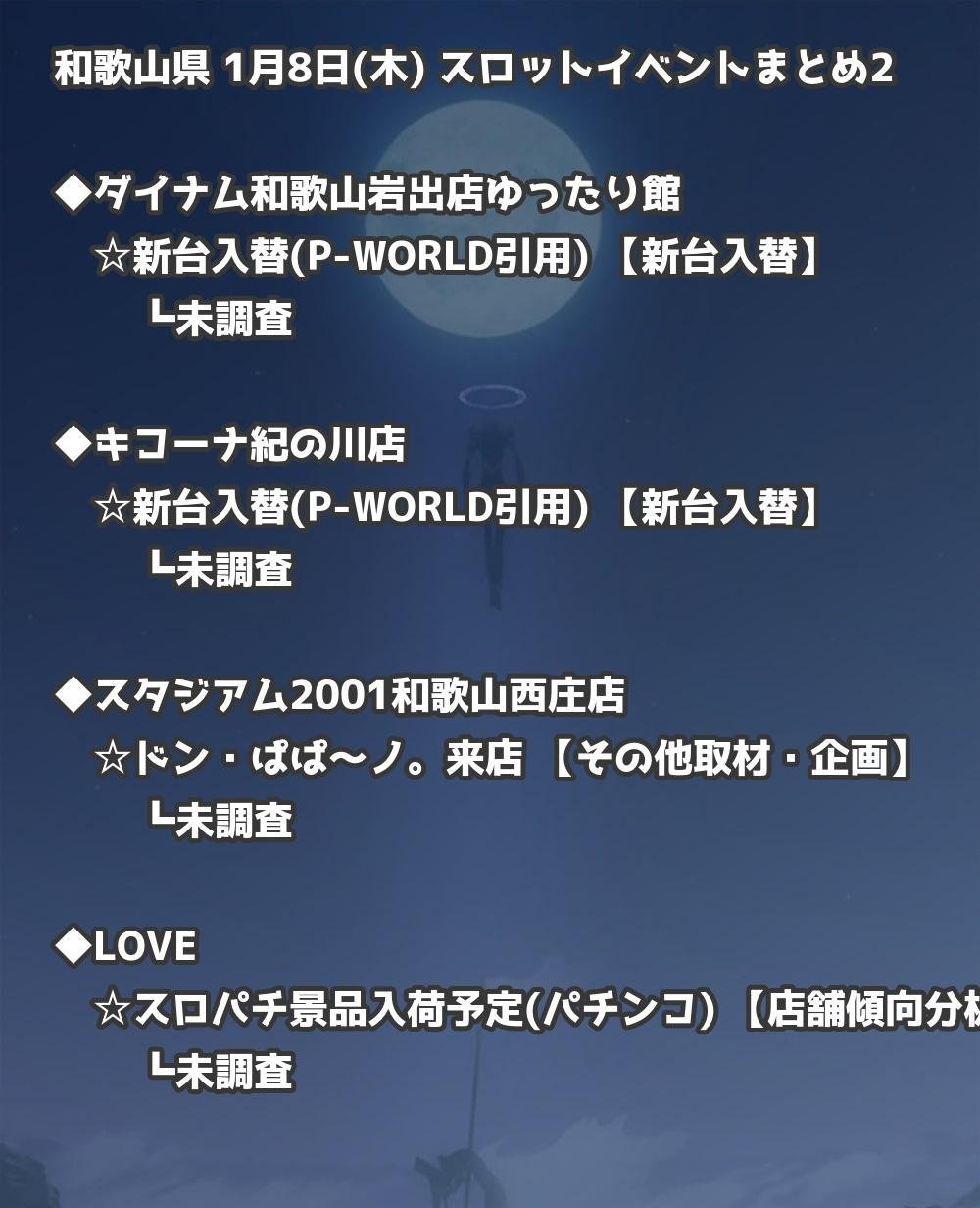 【和歌山県】1月8日(木) パチンコホールイベント取材まとめ記事です。