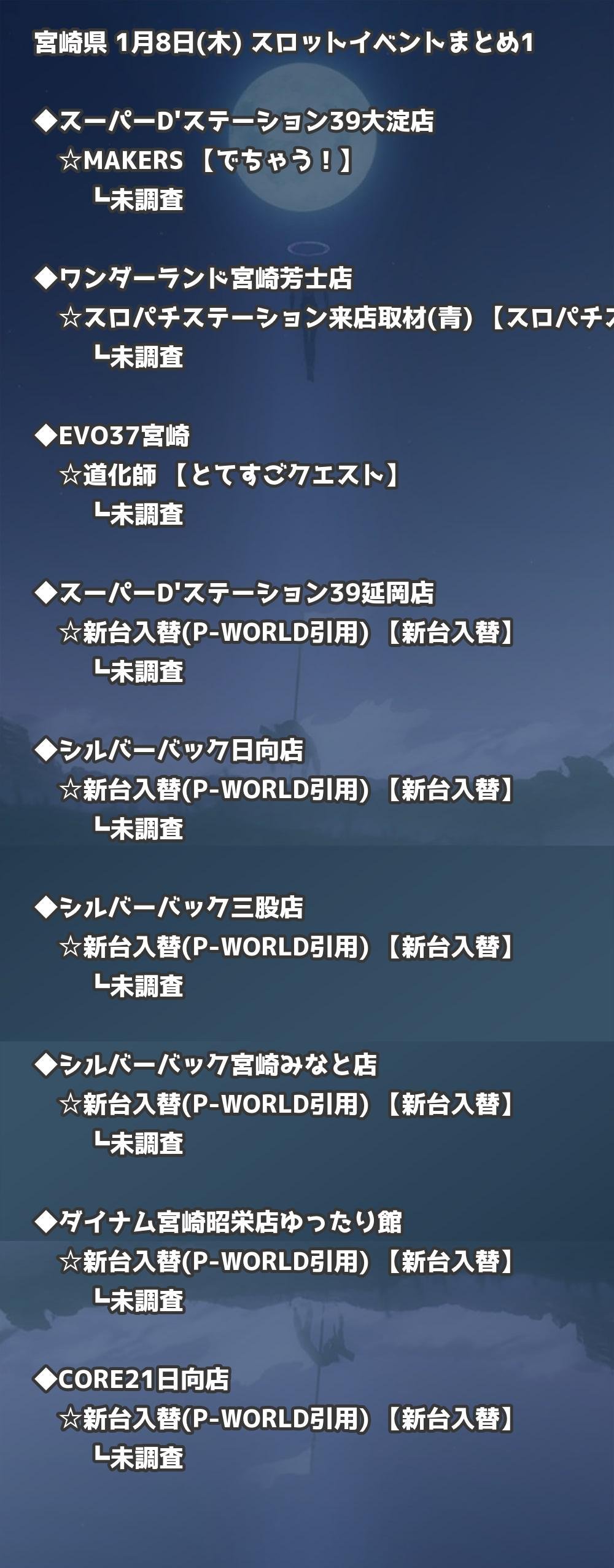 📊 宮崎県 1月8日(木) 勝てるパチンコ・スロット取材店舗一覧|おすすめ順