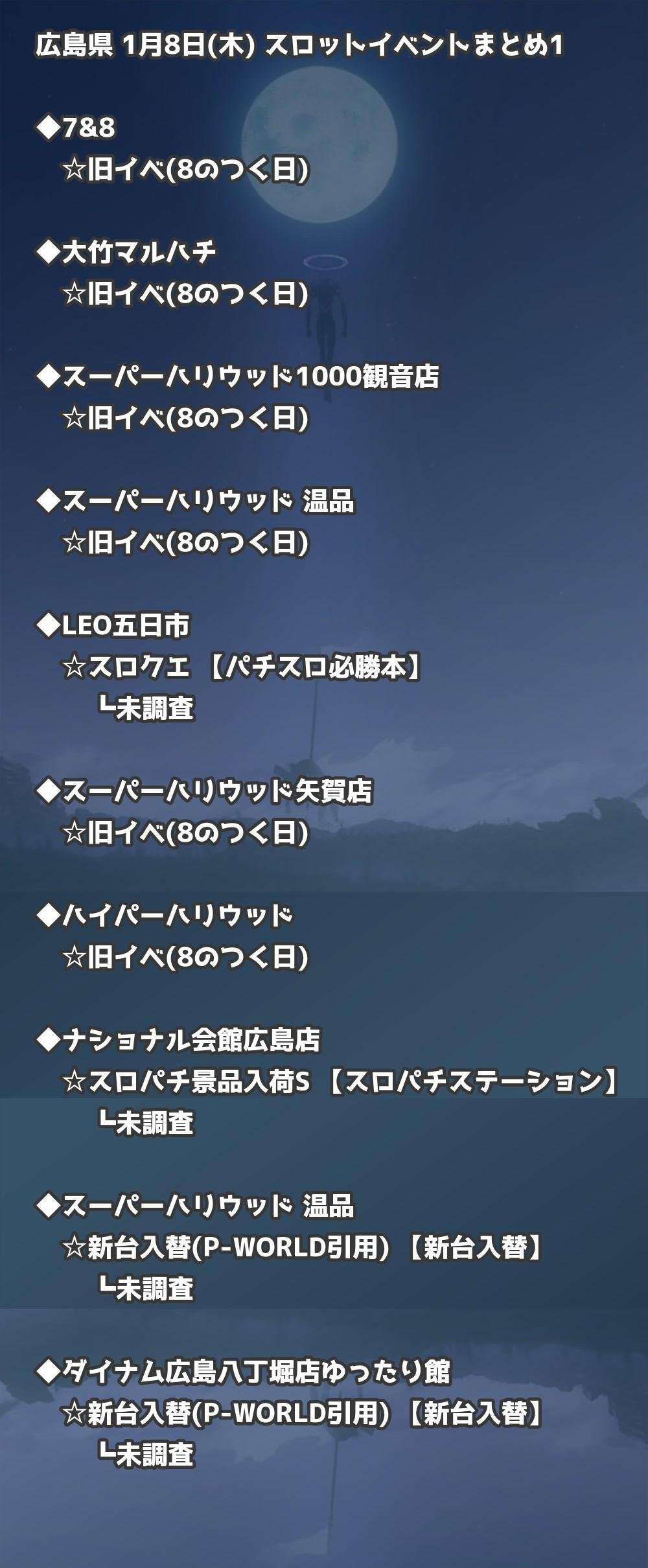 【広島県】1月8日(木) パチンコホールイベント取材まとめ記事です。