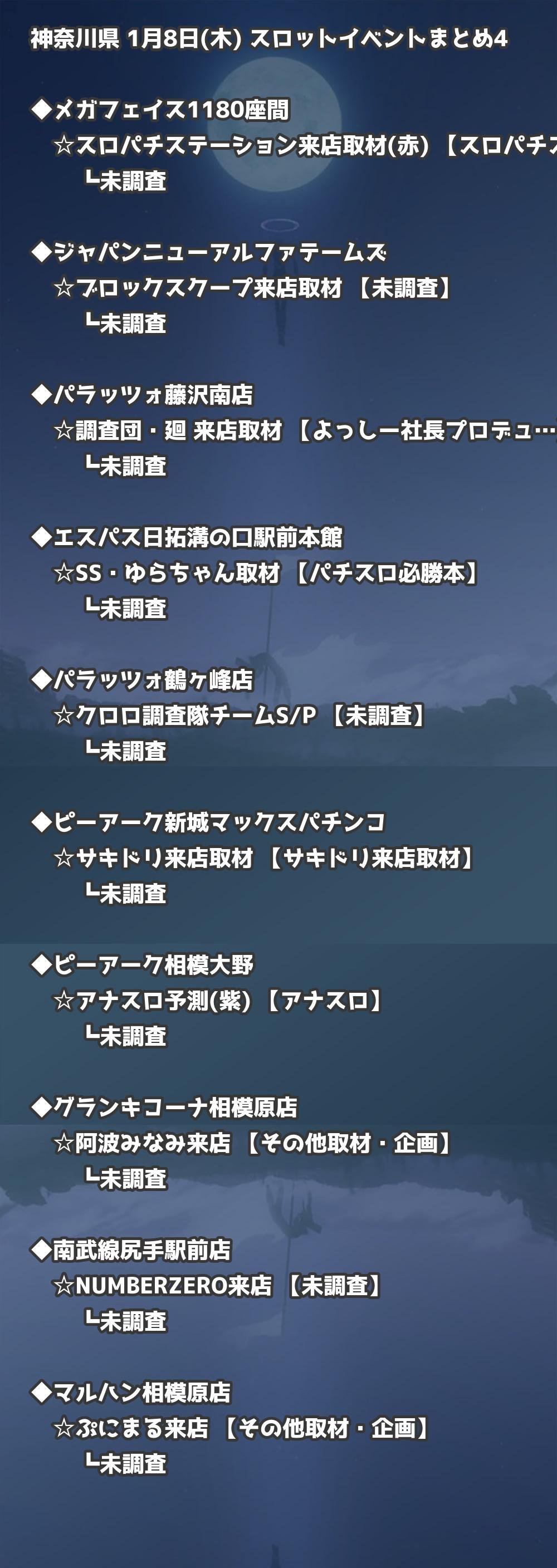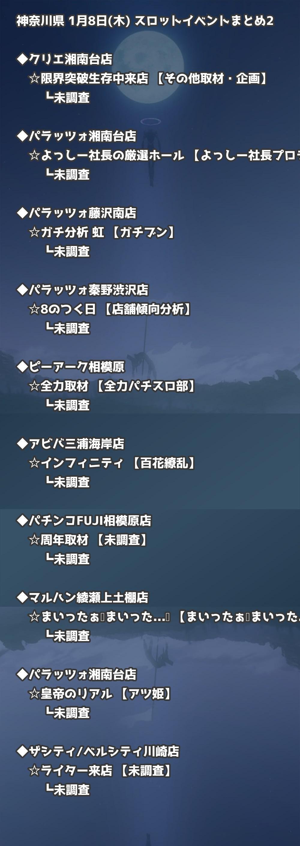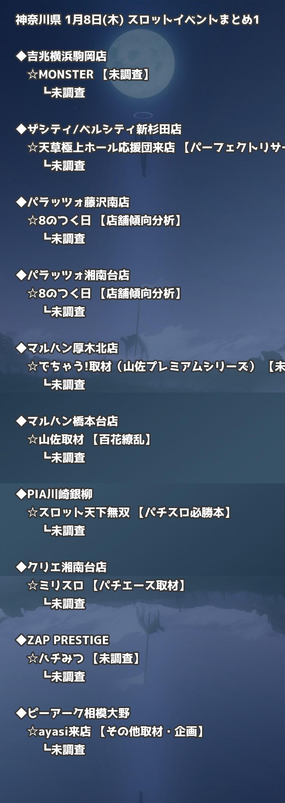 📊 神奈川県 1月8日(木) 勝てるパチンコ・スロット取材店舗一覧|おすすめ順
