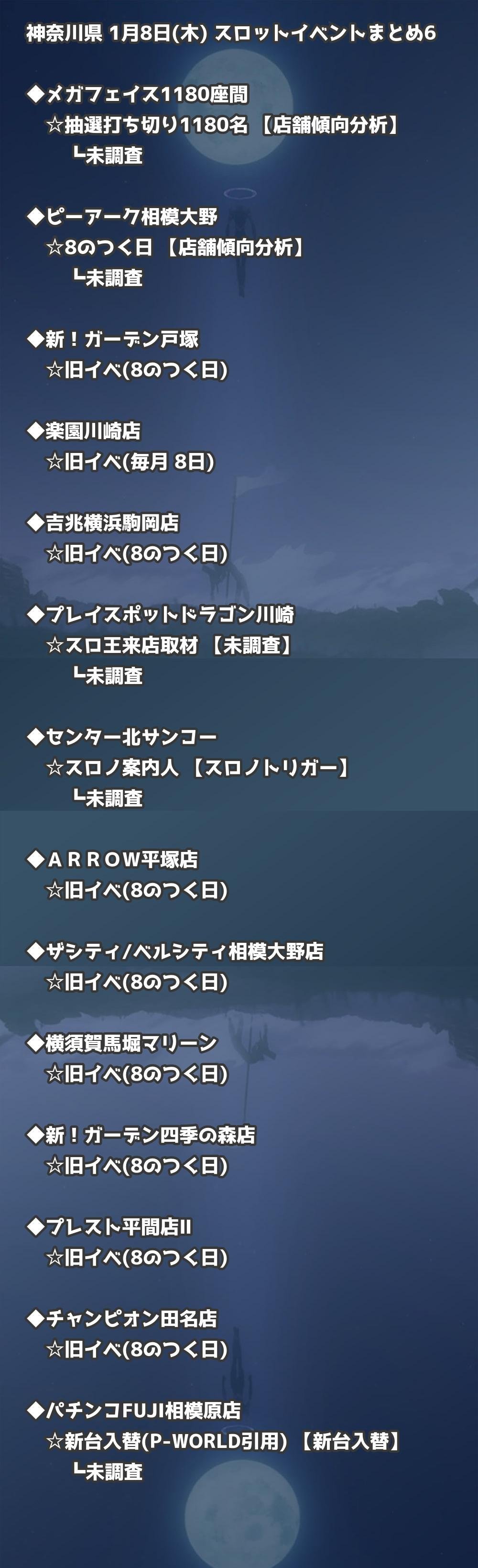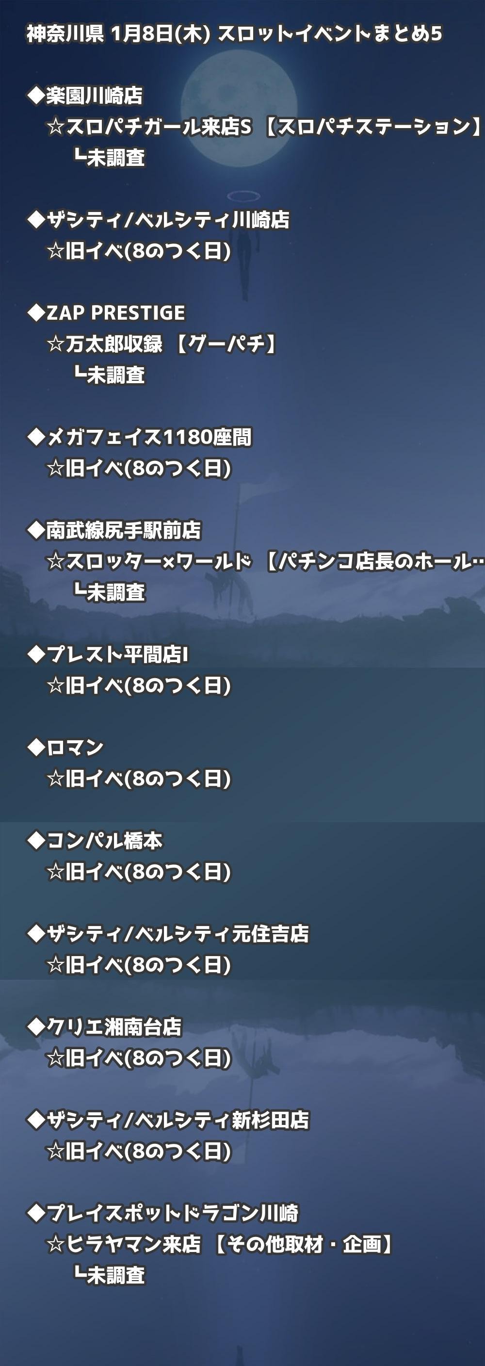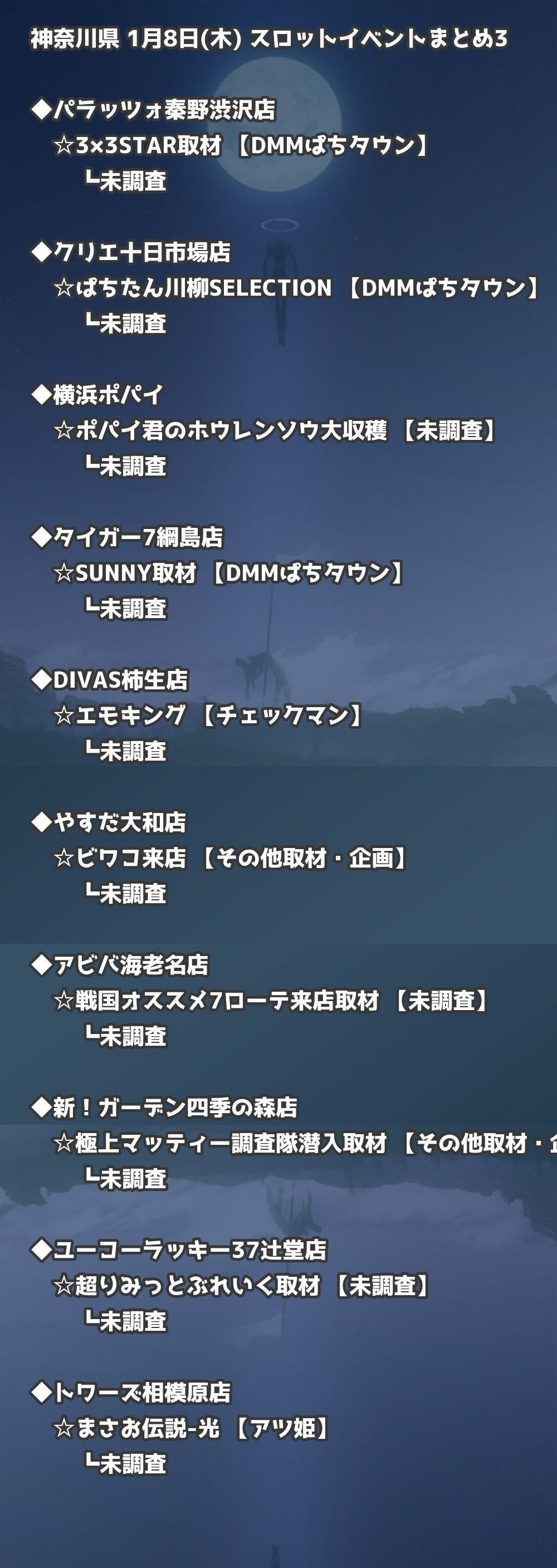 📊 神奈川県 1月8日(木) 勝てるパチンコ・スロット取材店舗一覧|おすすめ順
