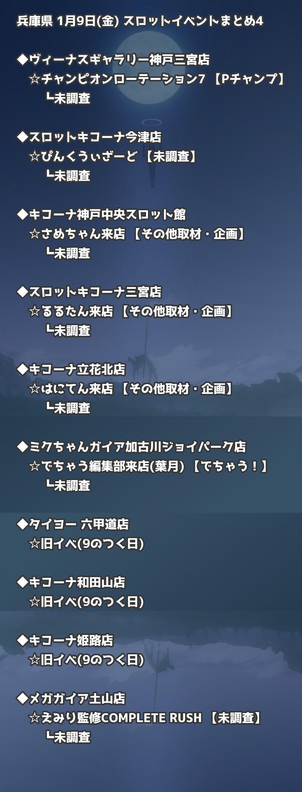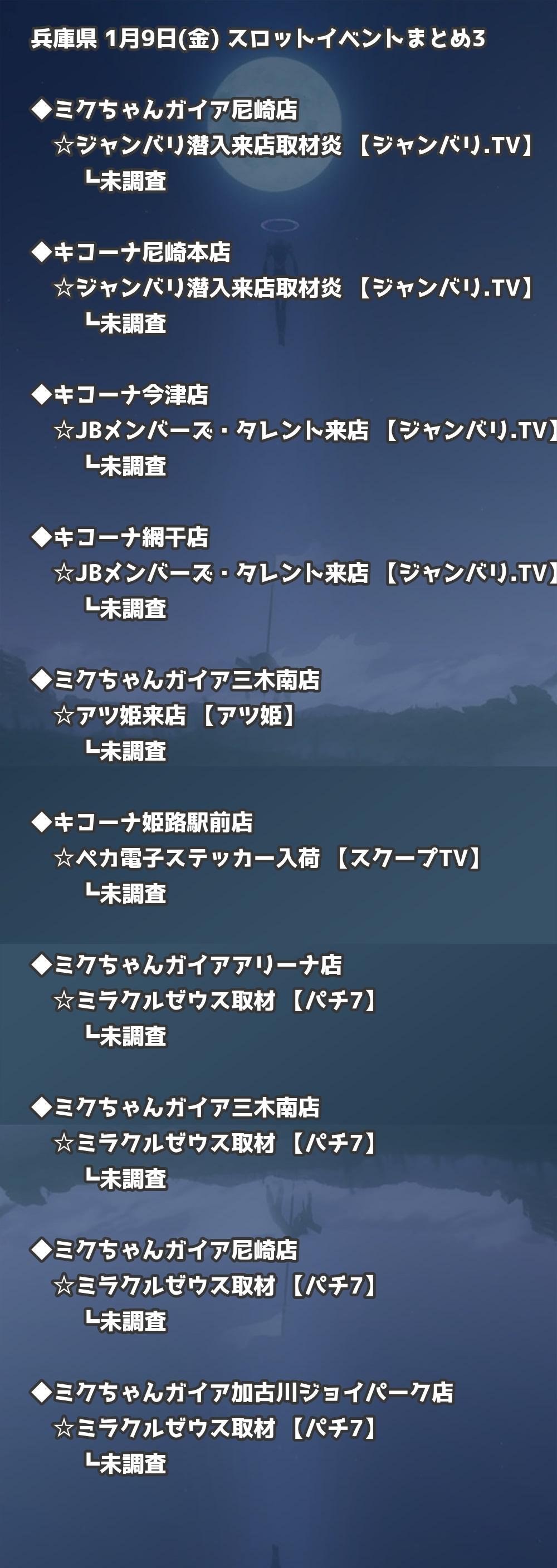 【兵庫県】1月9日(金) パチンコホールイベント取材まとめ記事です。