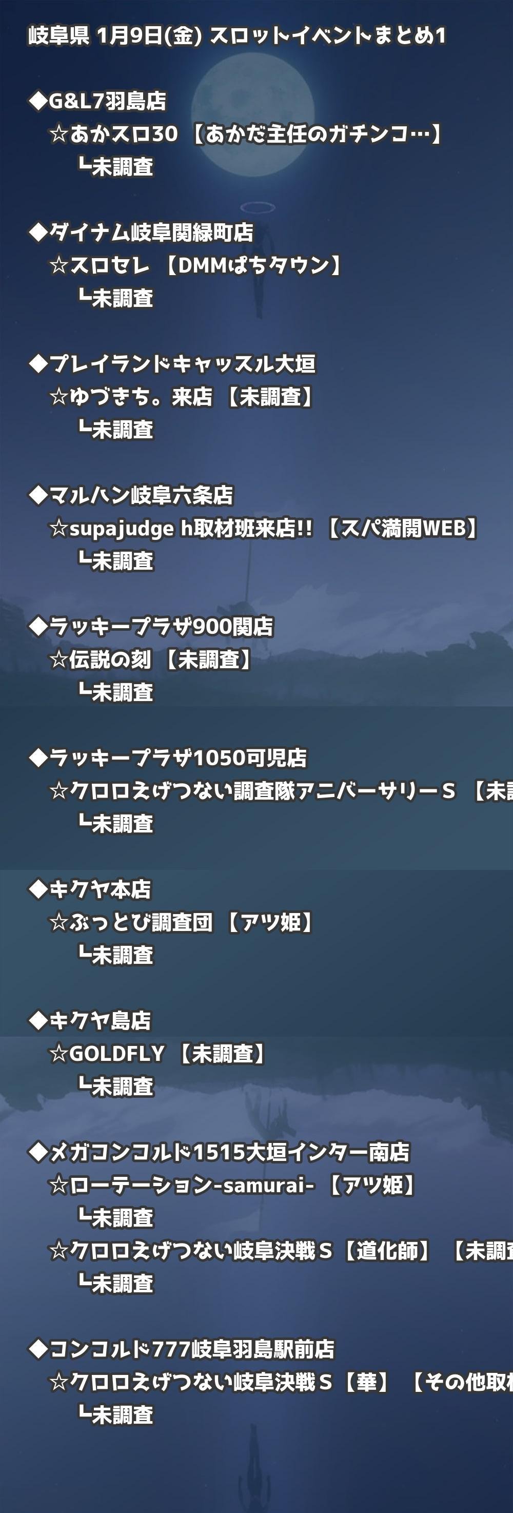 📊 岐阜県 1月9日(金) 勝てるパチンコ・スロット取材店舗一覧|おすすめ順