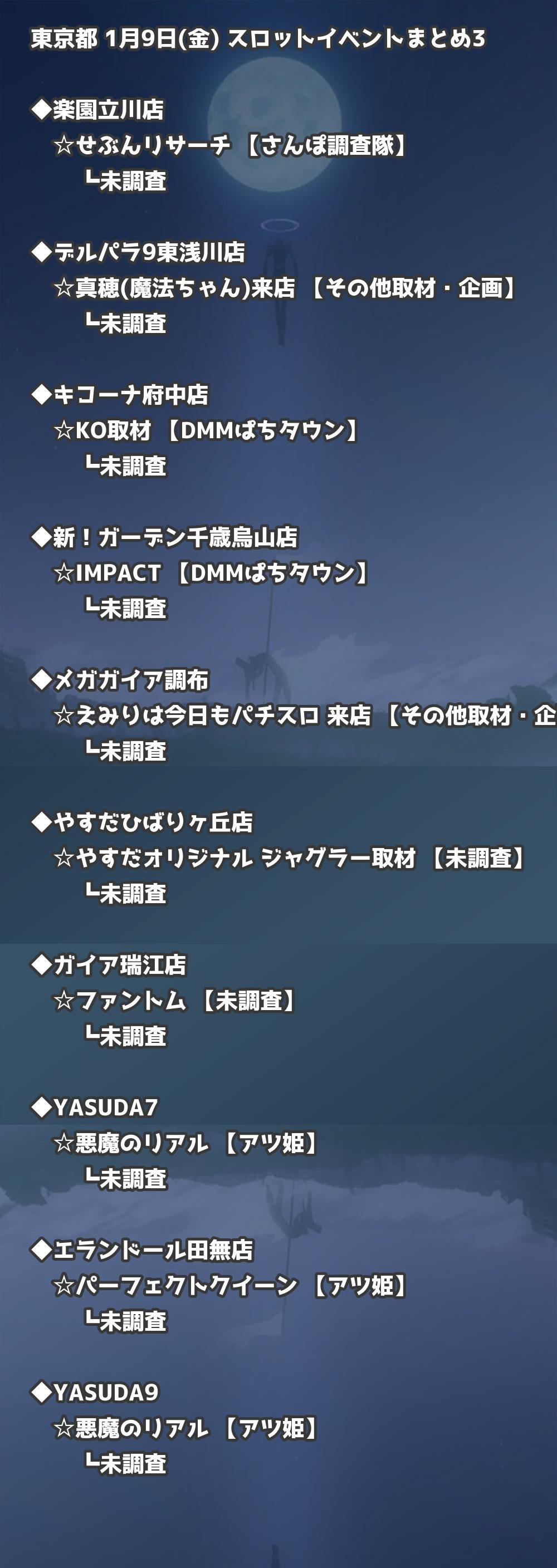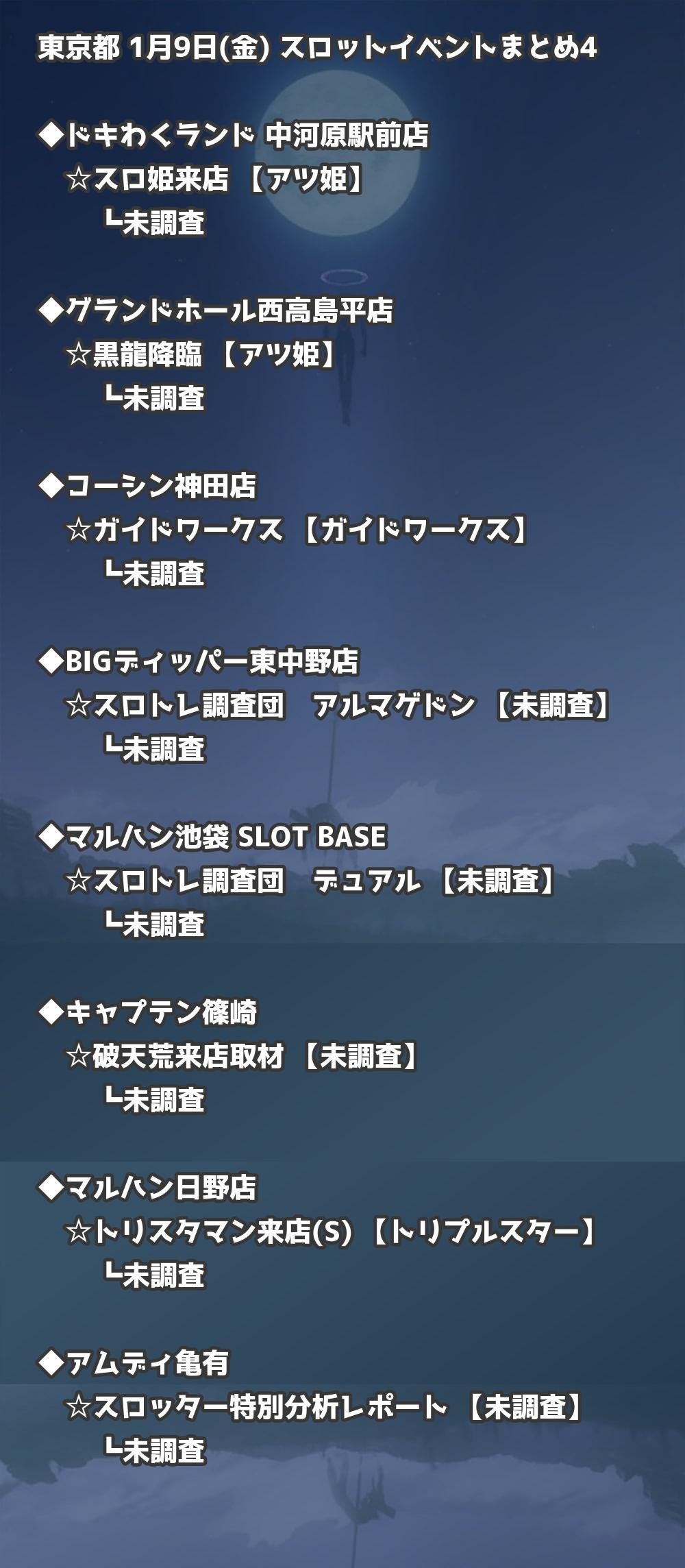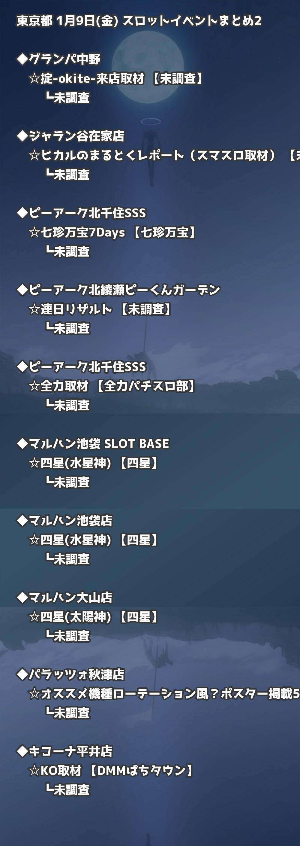 【東京都】1月9日(金) パチンコホールイベント取材まとめ記事です。