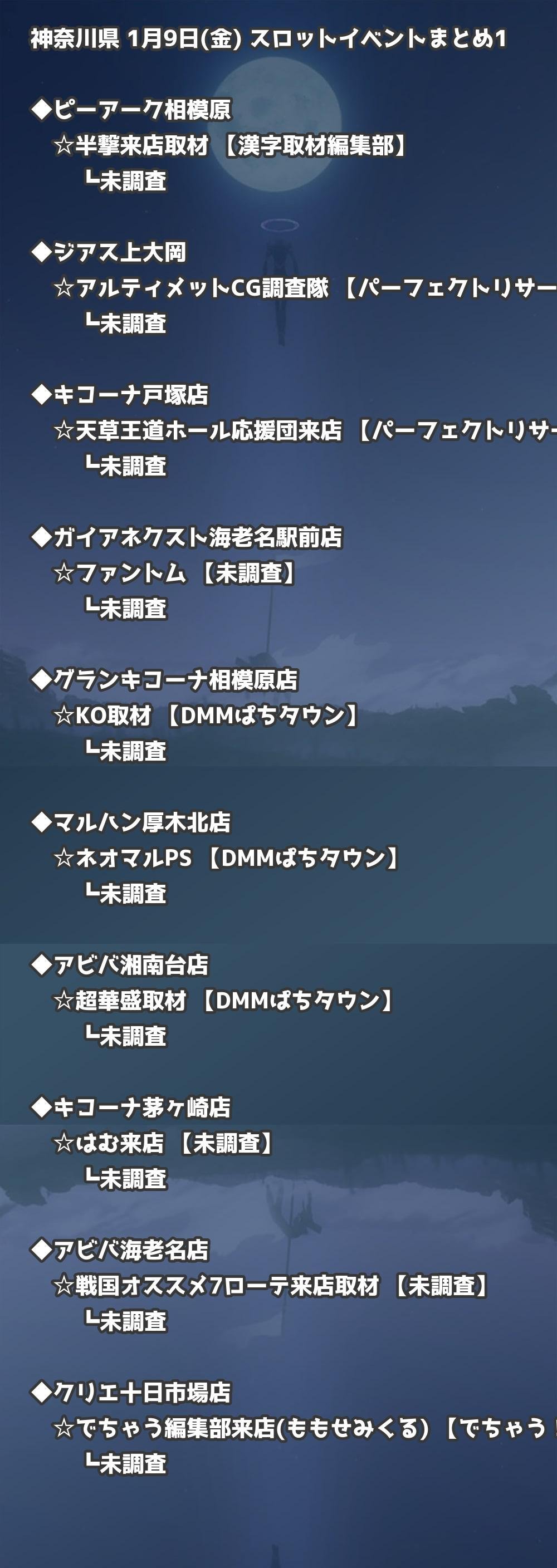 📊 神奈川県 1月9日(金) 勝てるパチンコ・スロット取材店舗一覧|おすすめ順