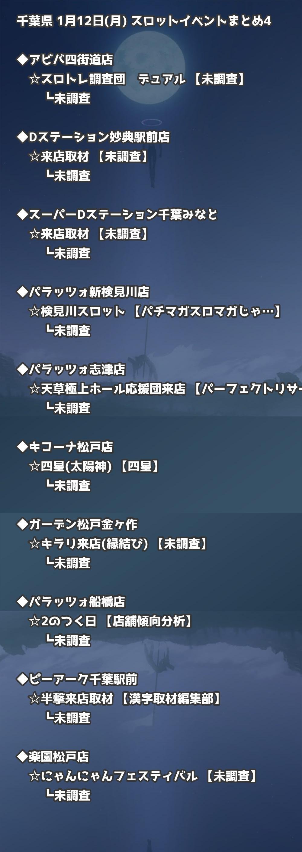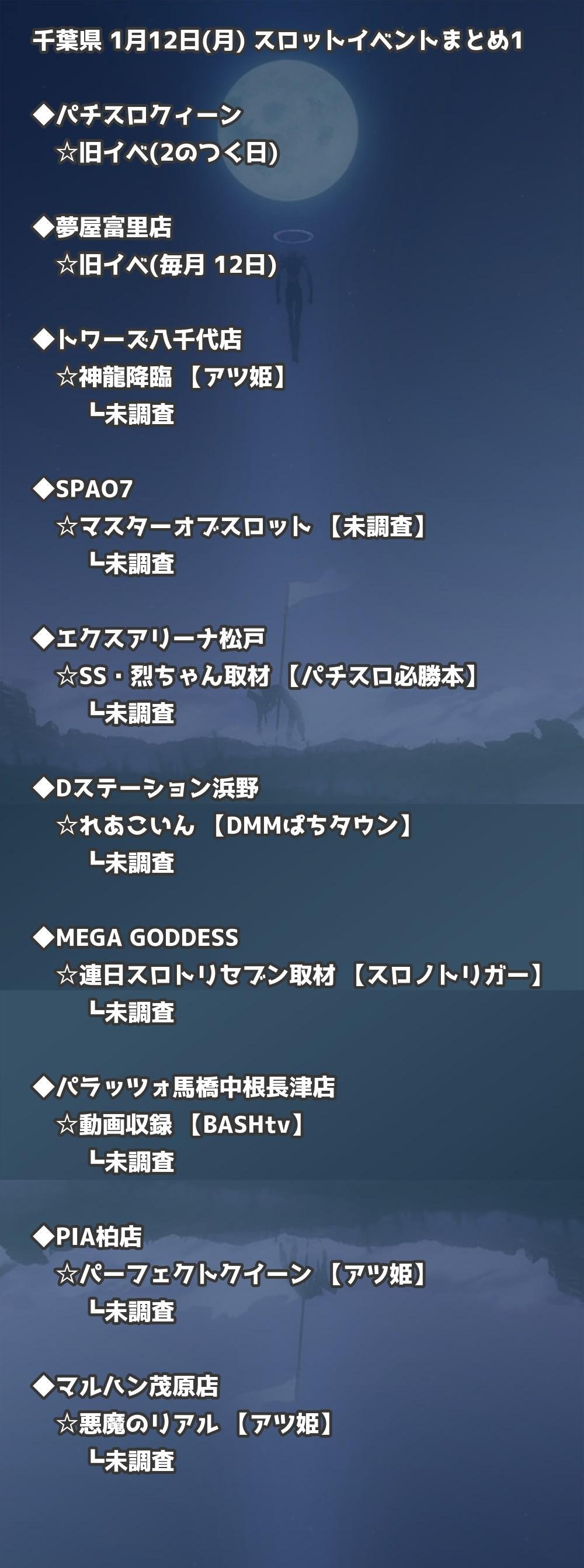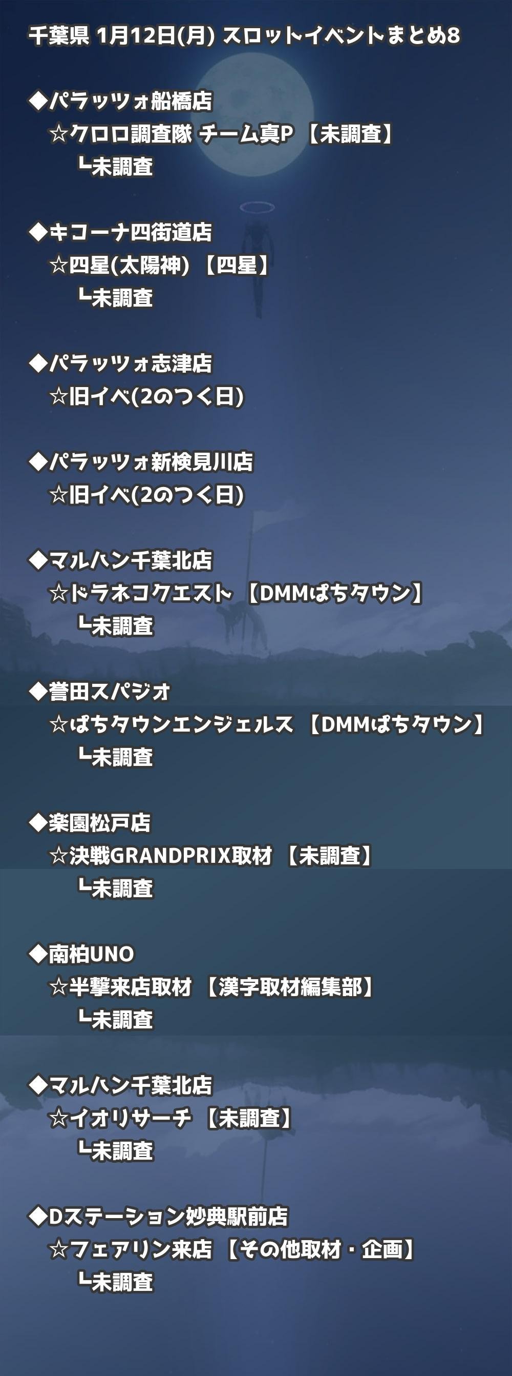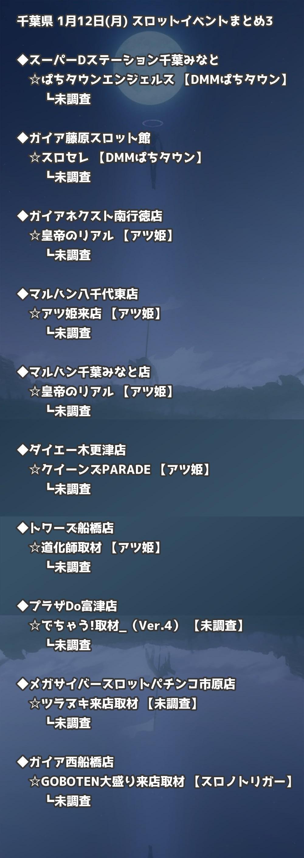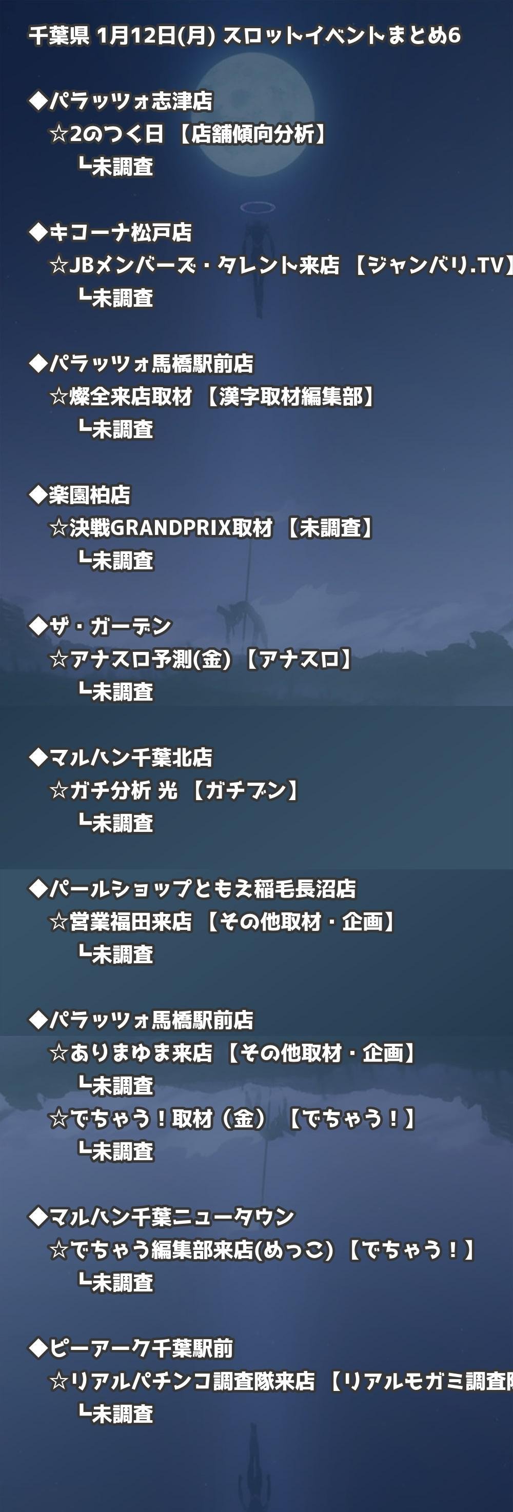 📊 千葉県 1月12日(月) 勝てるパチンコ・スロット取材店舗一覧|おすすめ順