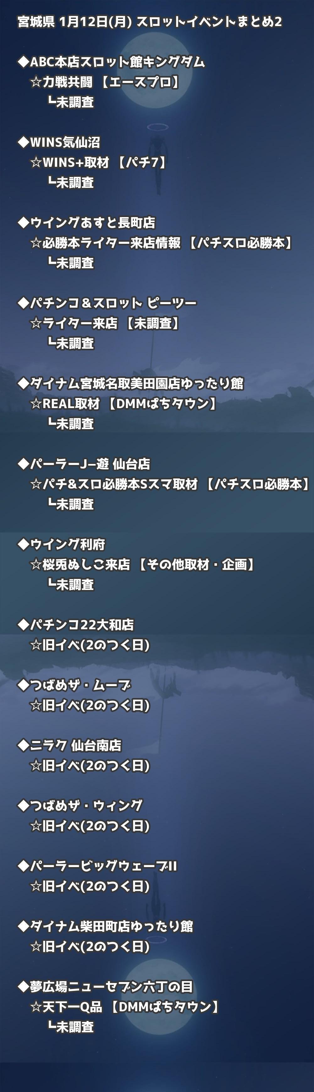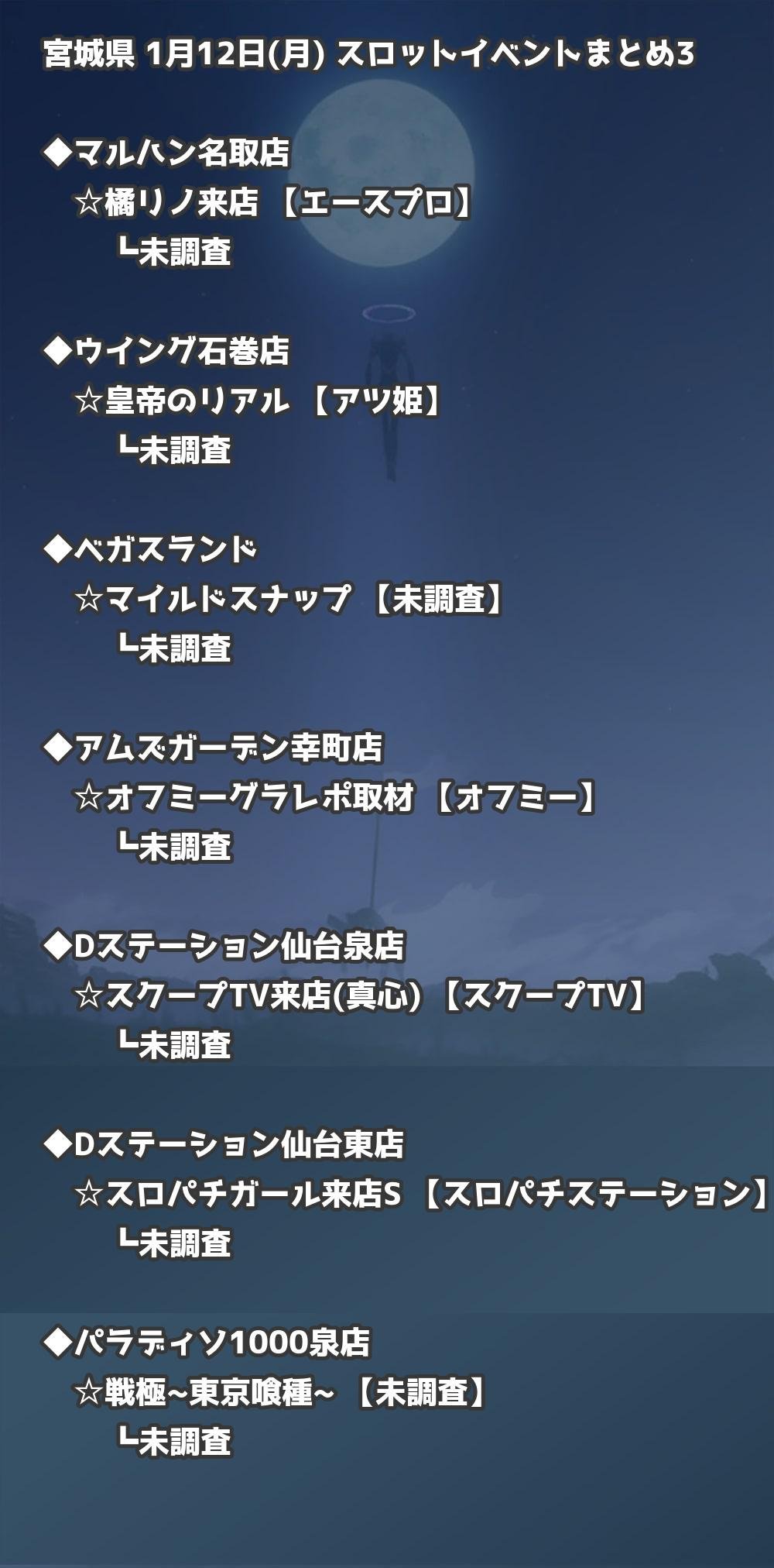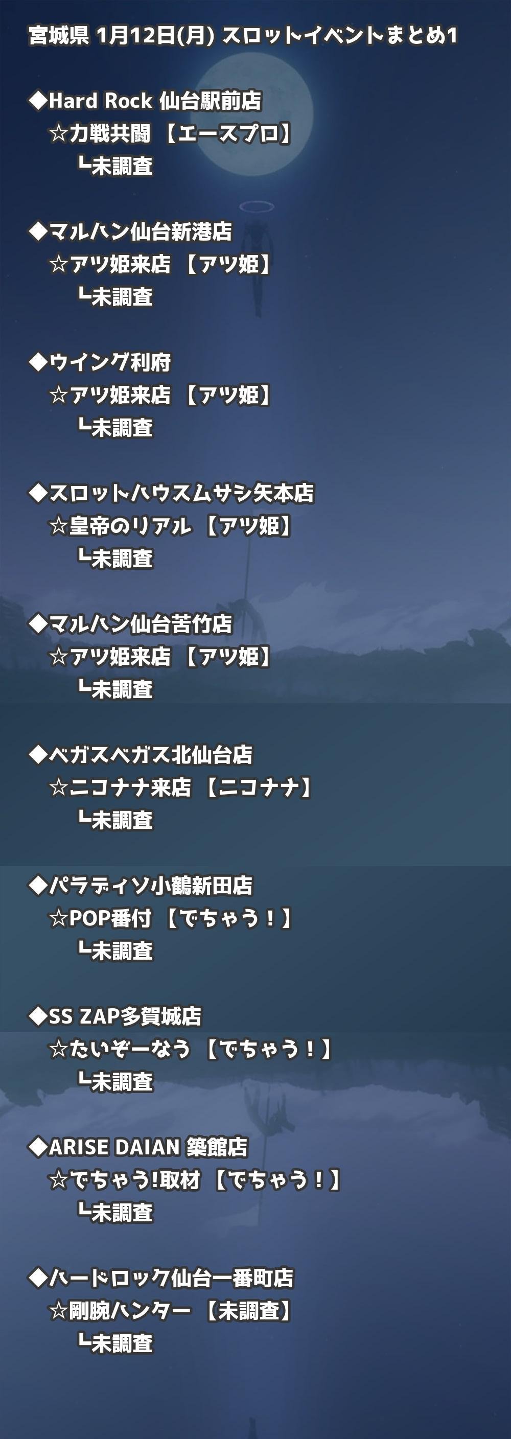 【宮城県】1月12日(月) パチンコホールイベント取材まとめ記事です。
