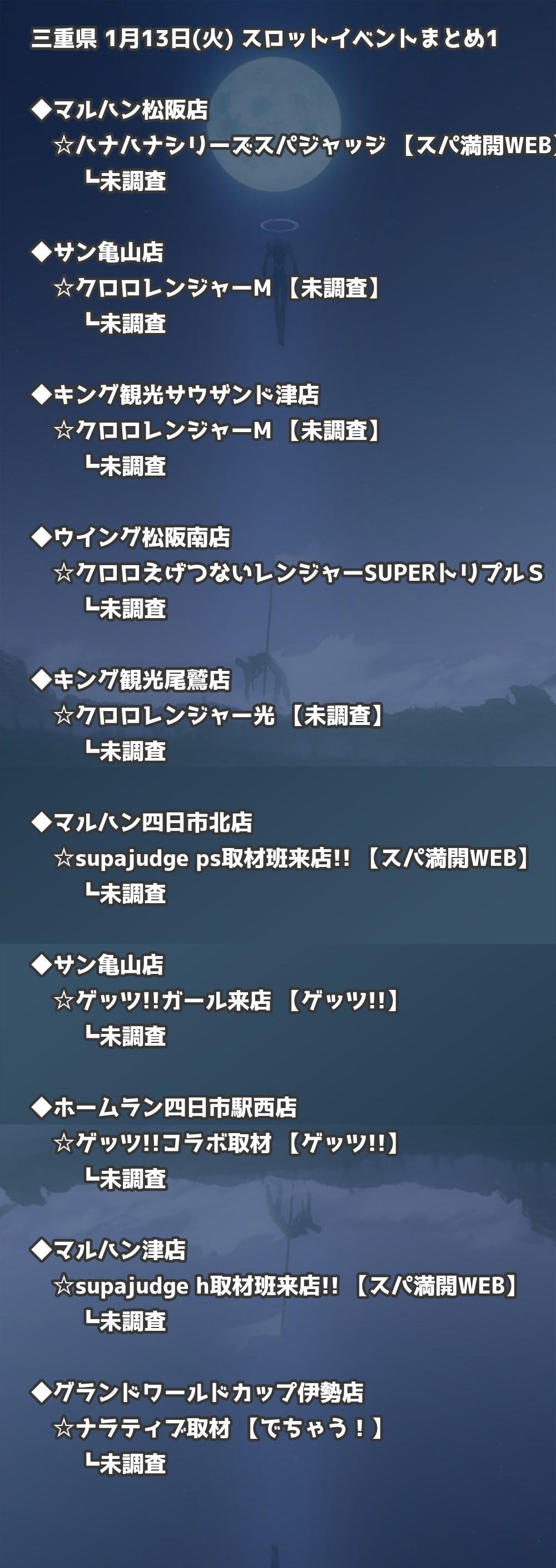 【三重県】1月13日(火) パチンコホールイベント取材まとめ記事です。