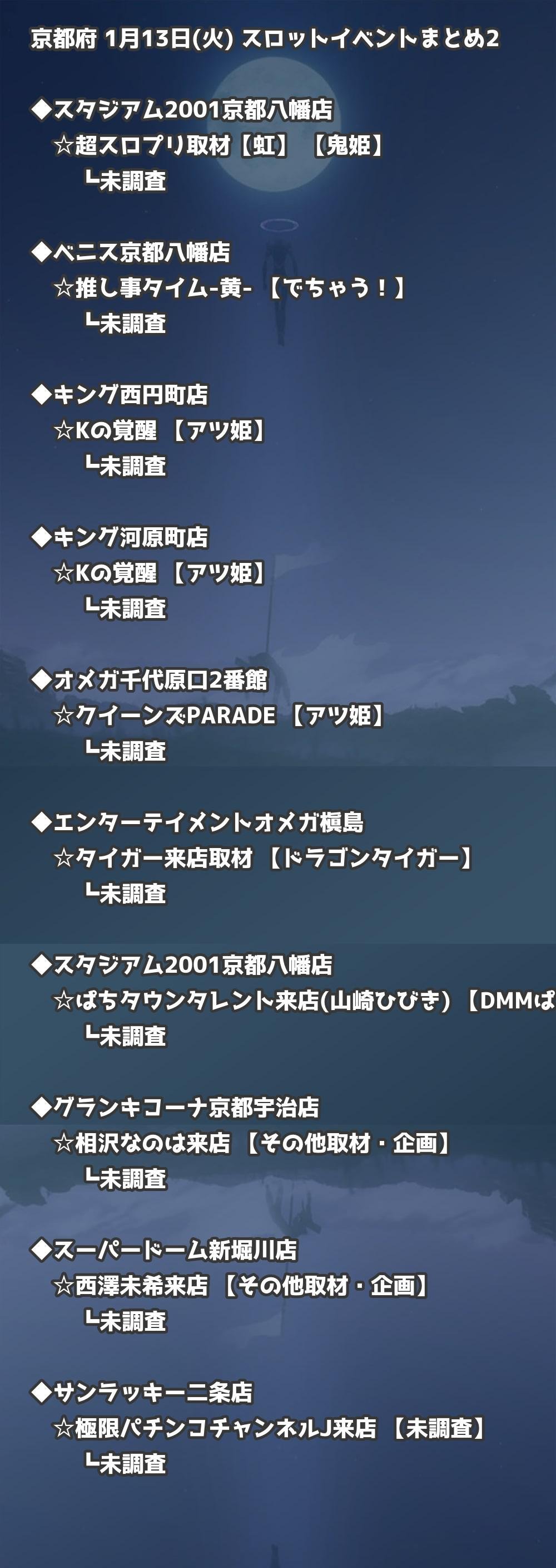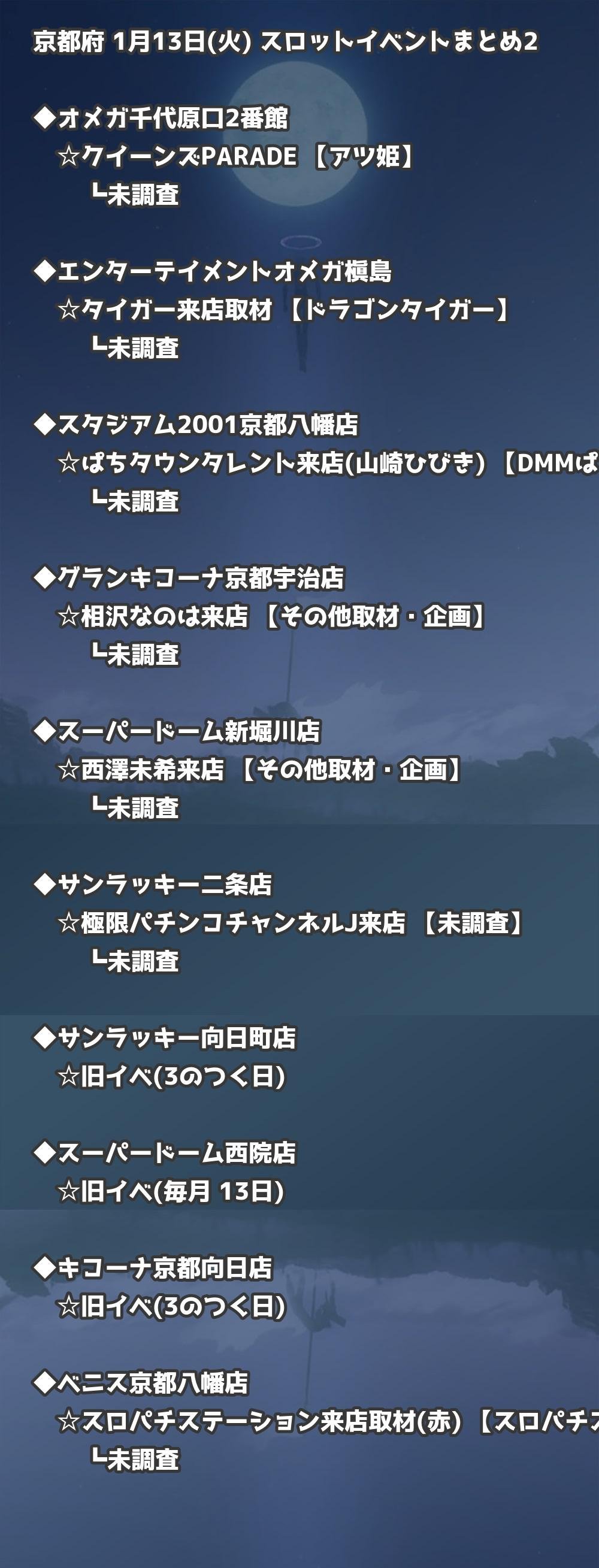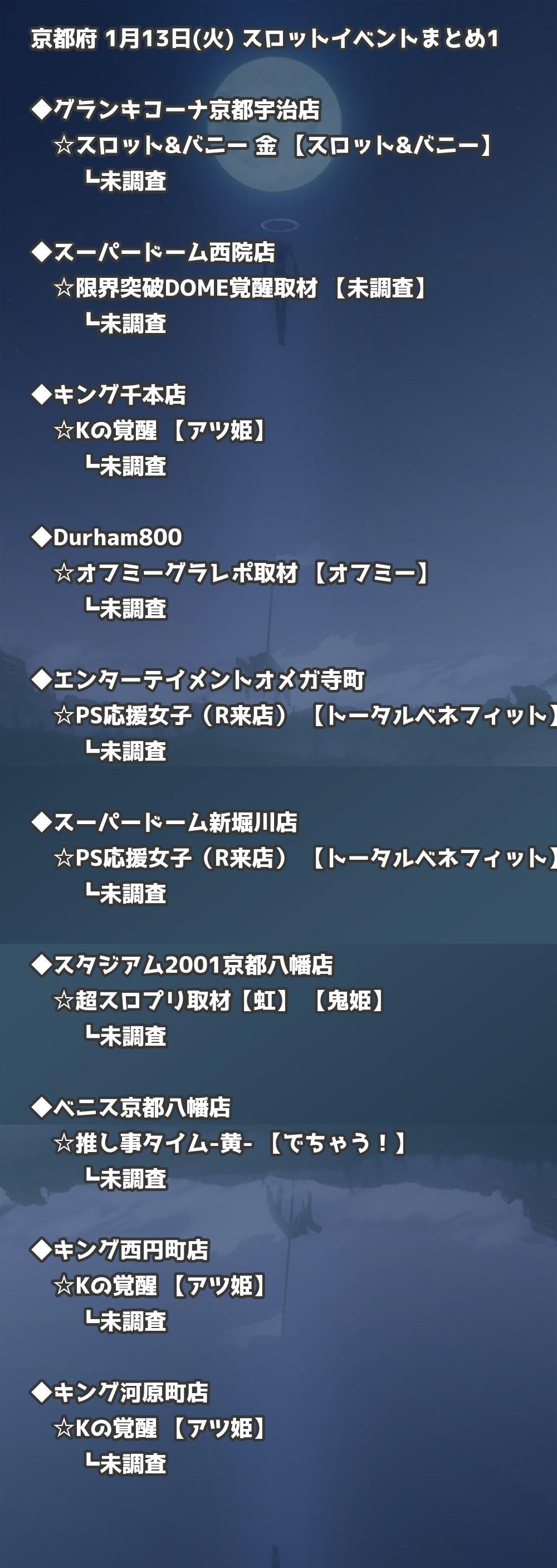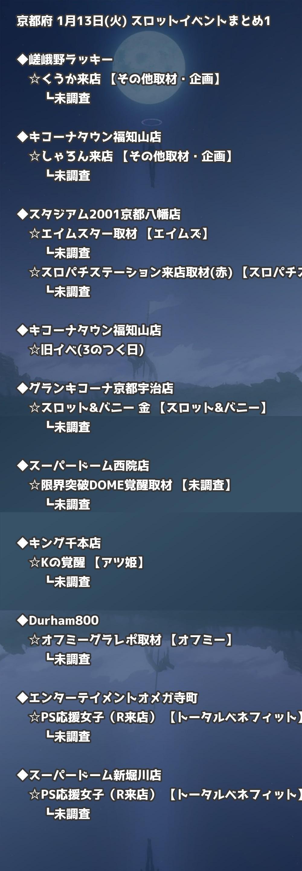 📊 京都府 1月13日(火) 勝てるパチンコ・スロット取材店舗一覧|おすすめ順