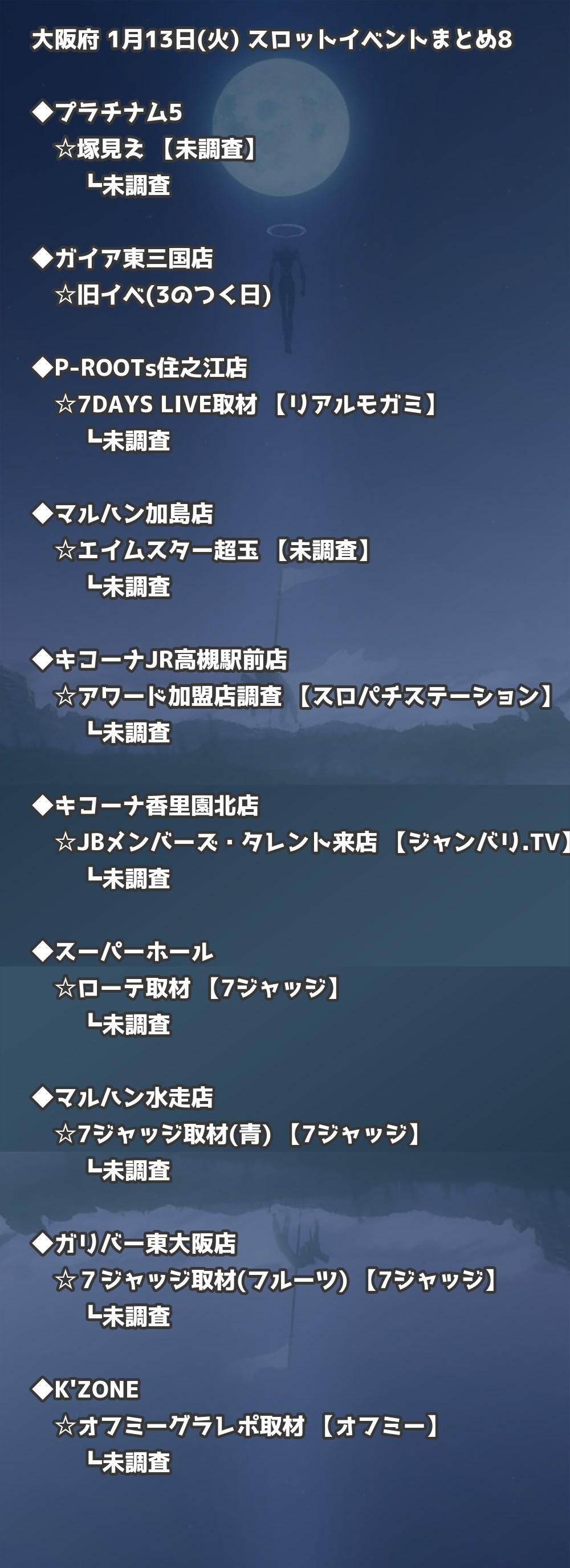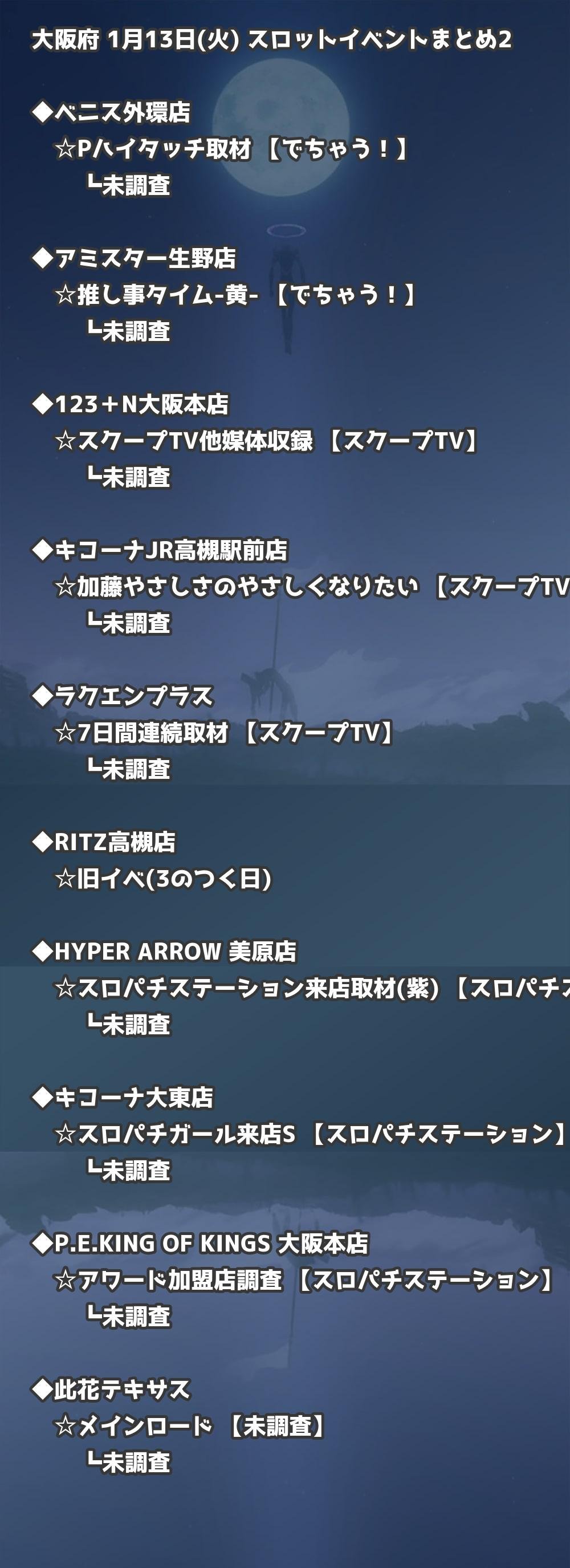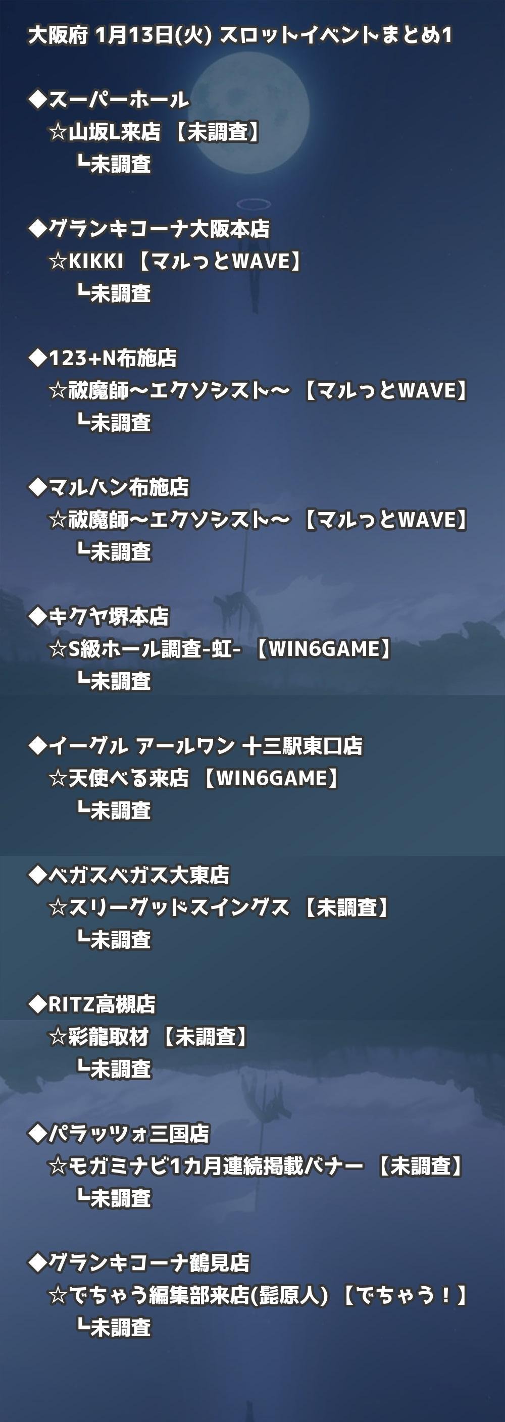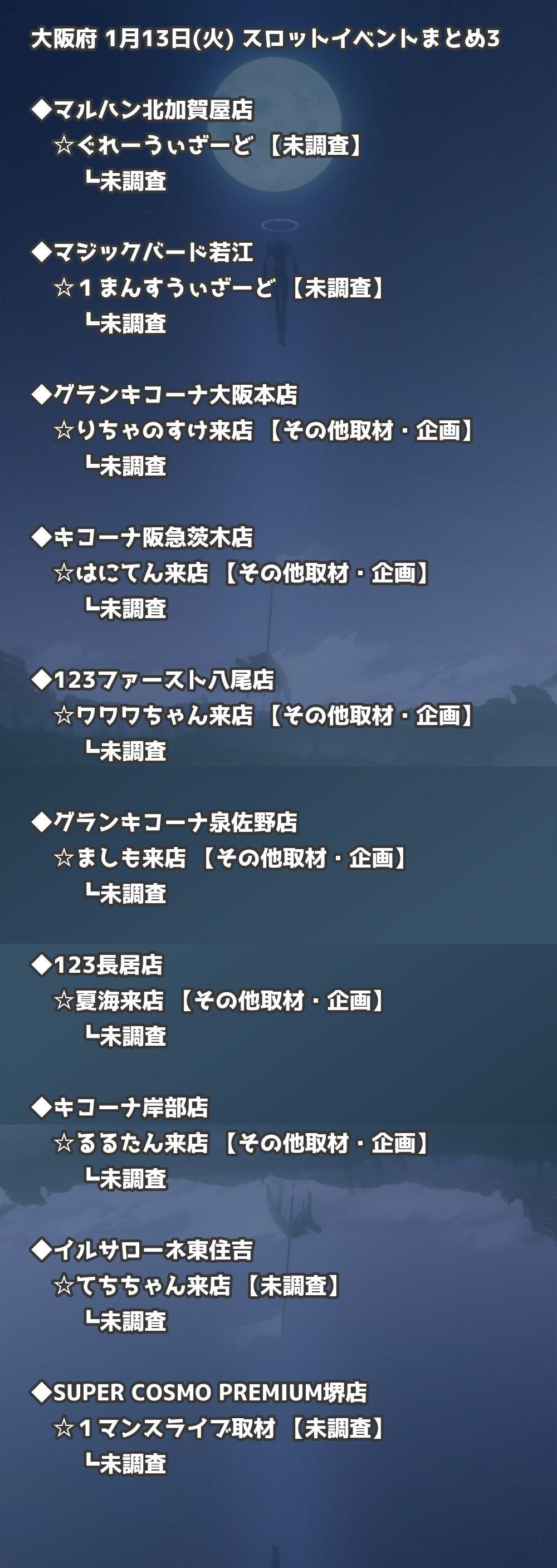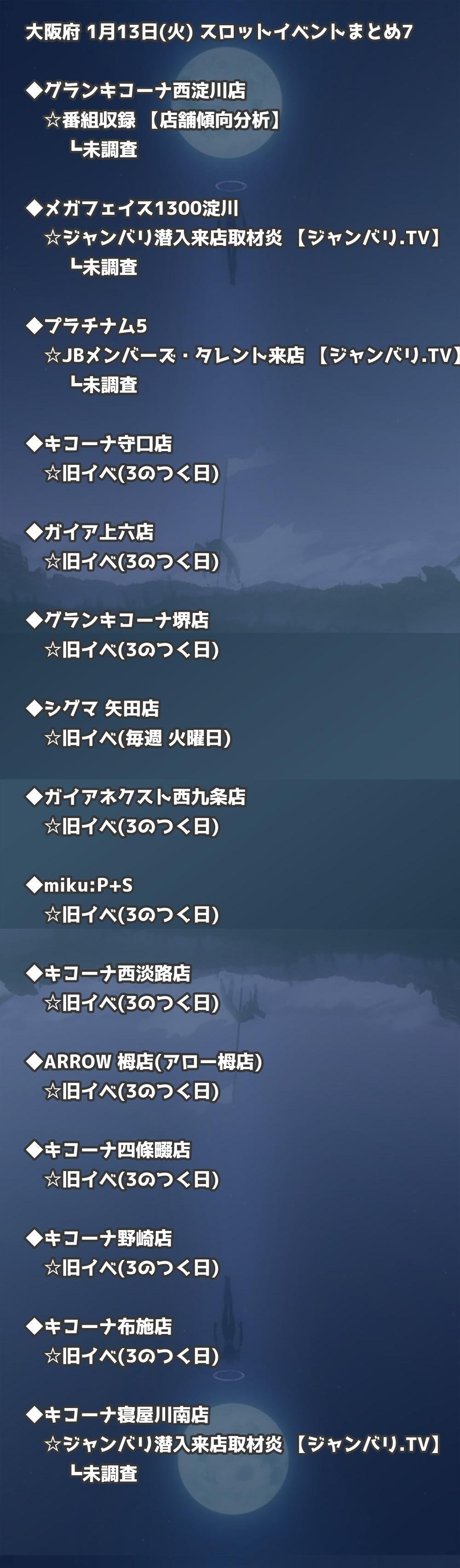 📊 大阪府 1月13日(火) 勝てるパチンコ・スロット取材店舗一覧|おすすめ順