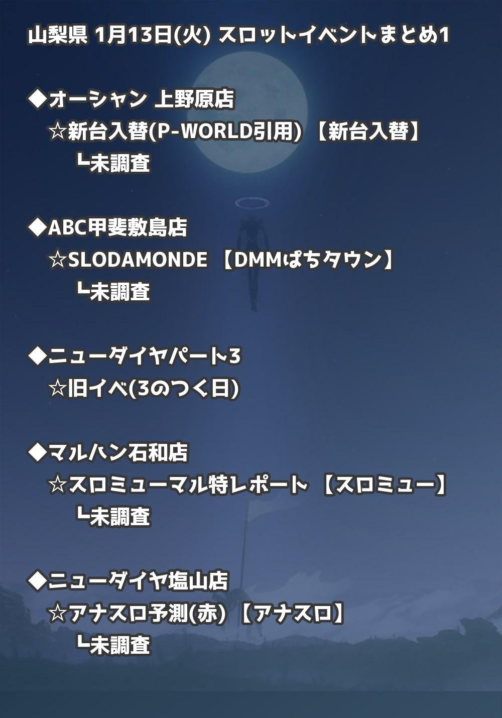 【山梨県】1月13日(火) パチンコホールイベント取材まとめ記事です。