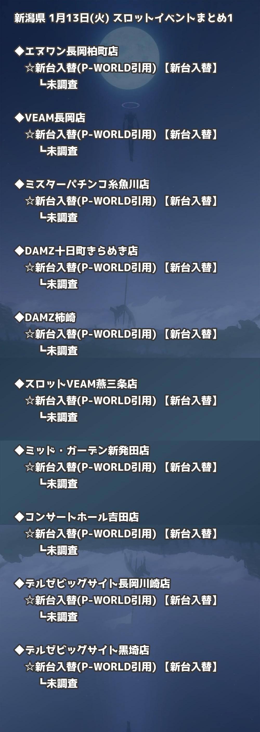 【新潟県】1月13日(火) パチンコホールイベント取材まとめ記事です。
